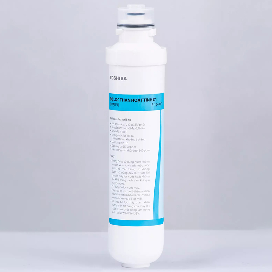 Lọc nước hiệu quả Lõi lọc nước Toshiba F-1643-C1 có tác dụng loại bỏ bùn đất, rỉ sét, các kim loại nặng trong nước. Ngoài ra nó còn có tác dụng khử mùi hiệu quả. Sản phẩm chỉ áp dụng cho model là máy lọc nước RO Toshiba TWP-W1643SV(W). Cấu tạo từ than hoạt tính Lõi lọc nước có khả năng ngăn chặn bùn đất, tạp chất lơ lửng, hỗn hợp độc tố trong nước, lọc bỏ được cả Clo, Clorine, chất hữu cơ dư thừa, các khí gây mùi có trong nước. Cấu tạo than hoạt tính, kích thước nhỏ nhất có thể lọc 12 - 40 eye. Thiết kế nhỏ gọn, đơn giản Lõi máy lọc nước số 2 - Pre-carbon thiết kế đơn giản, gọn gàng, kích cỡ lõi φ68 × 281, loại xoay, tiện tháo lắp. Thời gian thay thế lõi lọc 6 tháng tương đương với 3.600 lít nước lọc (tùy thuộc vào chất lượng nguồn nước đầu vào).
