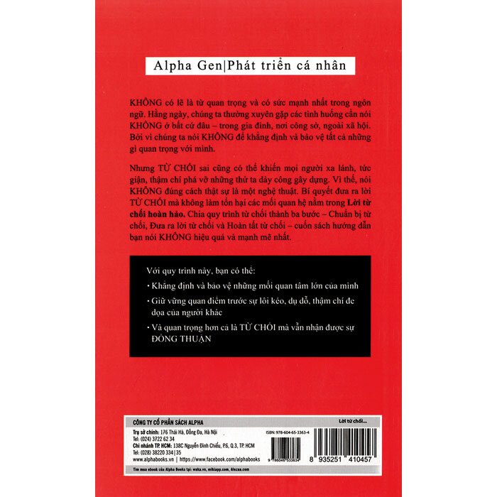 Bí quyết đưa ra lời Từ chối mà không làm tổn hại các mối quan hệ nằm trong Lời từ chối hoàn hảo. Chia quy trình Từ chối thành ba bước - Chuẩn bị từ chối, đưa ra từ chối và hoàn tất từ chối - cuốn sách hướng dẫn bạn phương pháp nói Không hiệu quả, mạnh mẽ nhất.