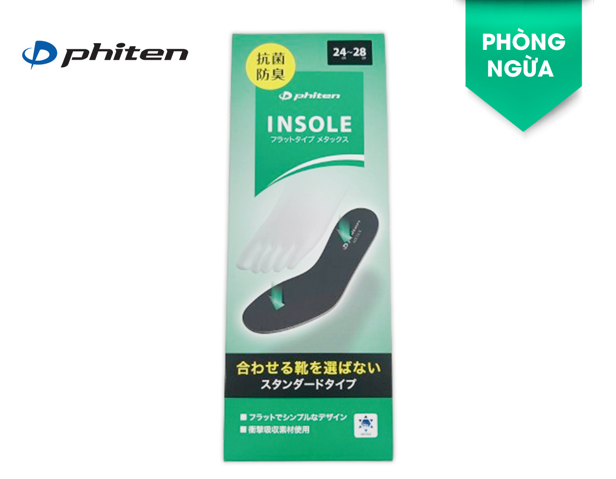 Mua tại TiktokLót giày trợ lực loại phẳng Phiten metax insole flat TI463003/TI463004 Mô tả sản phẩm: Miếng lót giày chứa các hạt MICRO TITANIUM làm đôi chân ngay lập tức được thư giãn. Thành phần AQUA SILVER được thêm vào có tác dụng trung hòa, giảm mùi hôi từ chân. Chất liệu: thân chính (acrylic resin 100%), bề mặt (polyester 100%). Công dụng: