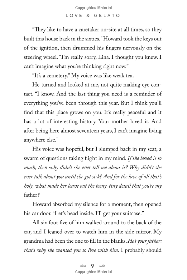 A New York Times bestseller A summer in Italy turns into a road trip across Tuscany in this sweeping debut novel filled with romance, mystery, and adventure. Lina is spending the summer in Tuscany, but she isn't in the mood for Italy's famous sunshine and fairy-tale landscape. She's only there because it was her mother's dying wish that she get to know her father. But what kind of father isn't around for sixteen years? All Lina wants to do is get back home. But then Lina is given a journal that her mom had kept when she lived in Italy. Suddenly Lina's uncovering a magical world of secret romances, art, and hidden bakeries. A world that inspires Lina, along with the ever-so-charming Ren, to follow in her mother's footsteps and unearth a secret that has been kept for far too long. It's a secret that will change everything Lina knew about her mother, her father--and even herself. People come to Italy for love and gelato, someone tells her, but sometimes they discover much more. Kirkus Reviews called Love & Gelato "a sure bet for fans of romance fiction," while VOYA said readers "will find it difficult to put this book down." Readers are about to discover a new place, a new romance, and a new talent .
