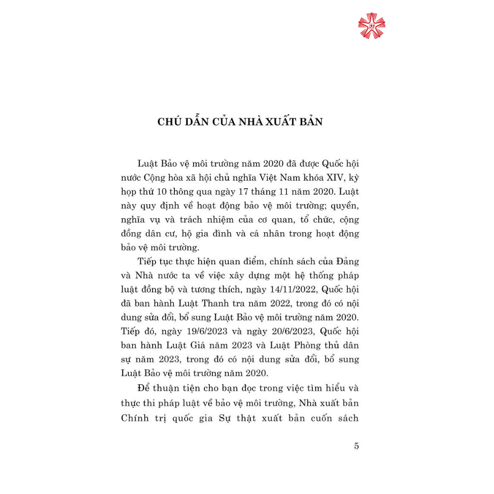 Cuốn sách “Luật Bảo vệ môi trường (hiện hành) (sửa đổi, bổ sung năm 2022, 2023)” cung cấp một cái nhìn toàn diện về những thay đổi và cập nhật trong luật pháp Việt Nam