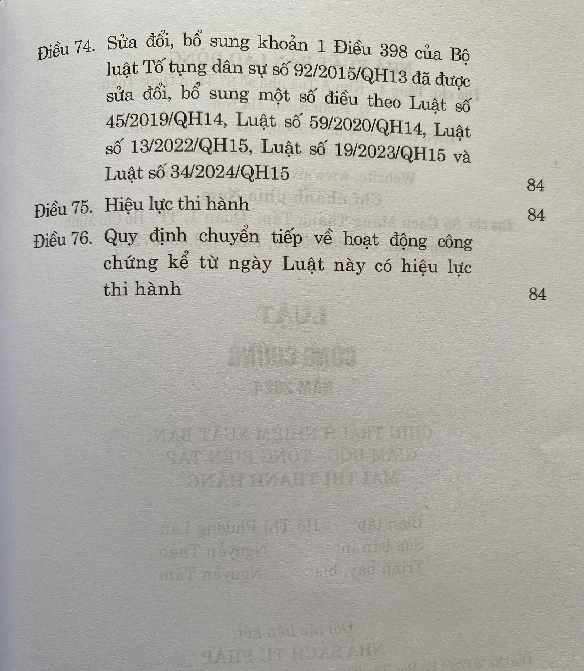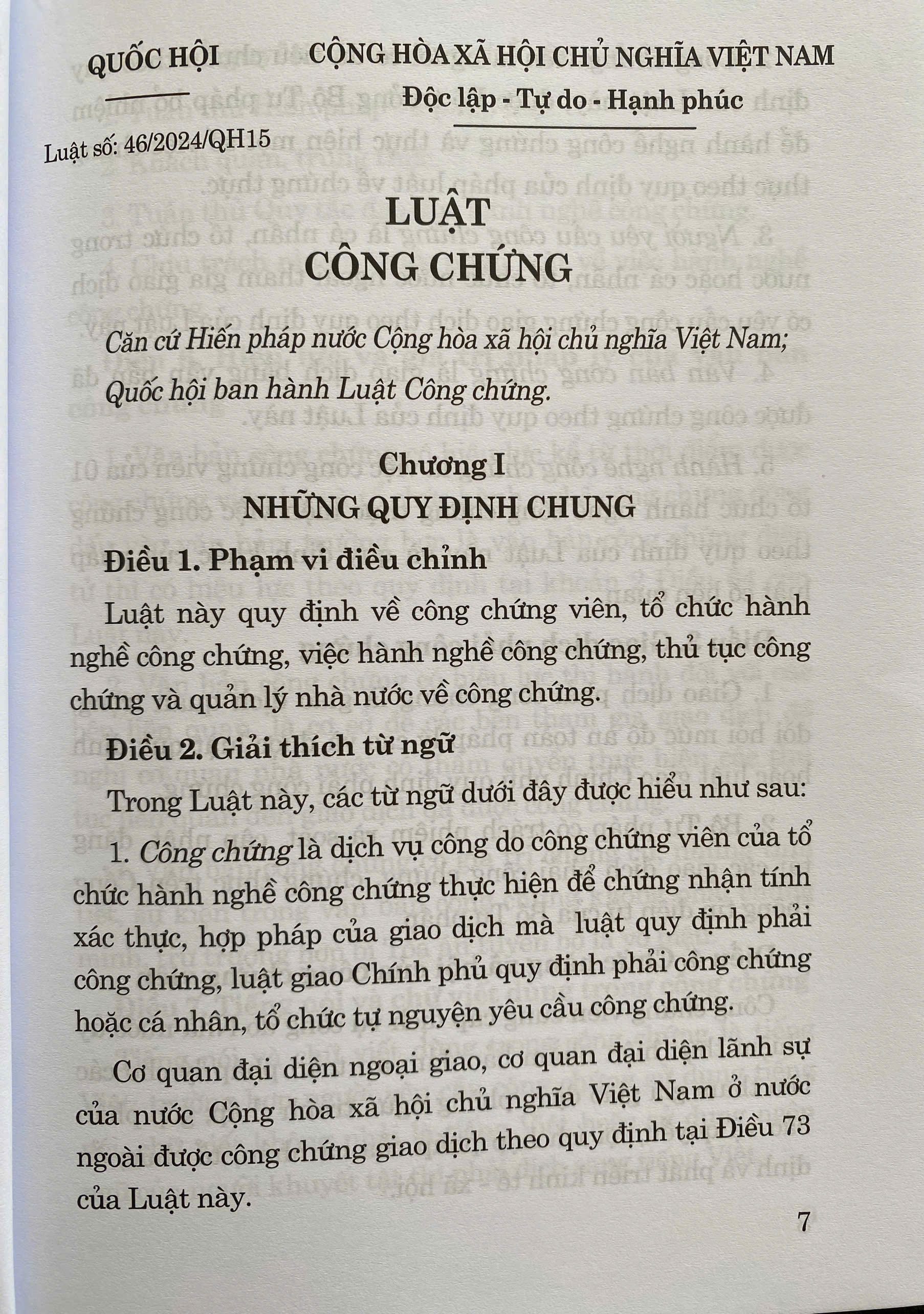 Mua tại TiktokLuật Công Chứng số 46/2024/QH15 đã được Quốc Hội khoá XV, kỳ họp thứ 8 thông qua ngày 26 tháng 11 năm 2024. Luật gồm có 8 chương, 76 điều. Luật này có hiệu lực thi hành từ ngày 01 tháng 07 năm 2025