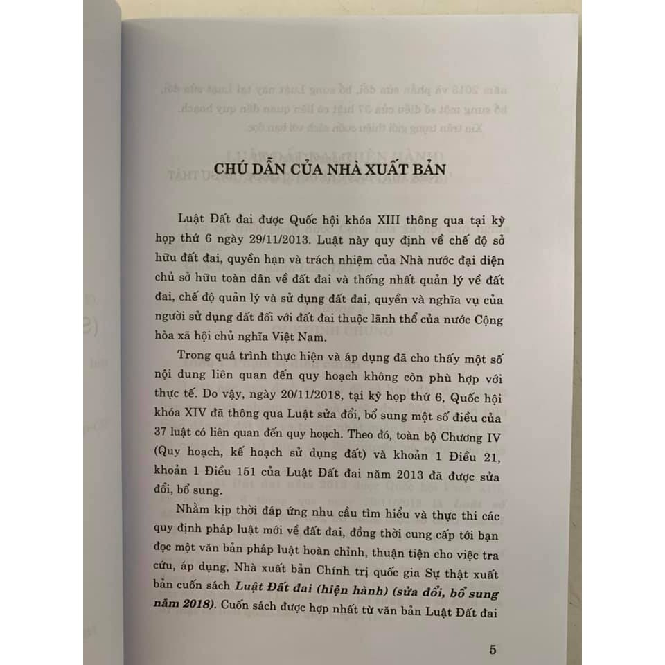 Sách - Luật Đất đai (hiện hành) (Sửa đổi, bổ sung năm 2018)