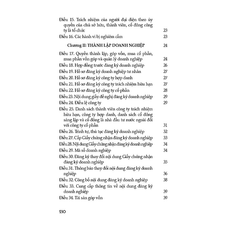 Luật Doanh nghiệp (hiện hành) (sửa đổi, bổ sung năm 2022) gồm 10 chương, 218 điều, quy định về thành lập, tổ chức quản lý, tổ chức lại, giải thể và hoạt động có liên quan của doanh nghiệp, bao gồm công ty trách nhiệm hữu hạn, công ty cổ phần, công ty hợp danh và doanh nghiệp tư nhân; quy định về nhóm công ty. Luật Doanh nghiệp được Quốc hội khóa XIV kỳ họp thứ 9 thông qua ngày 17/6/2020, thay thế cho Luật Doanh nghiệp năm 2014.