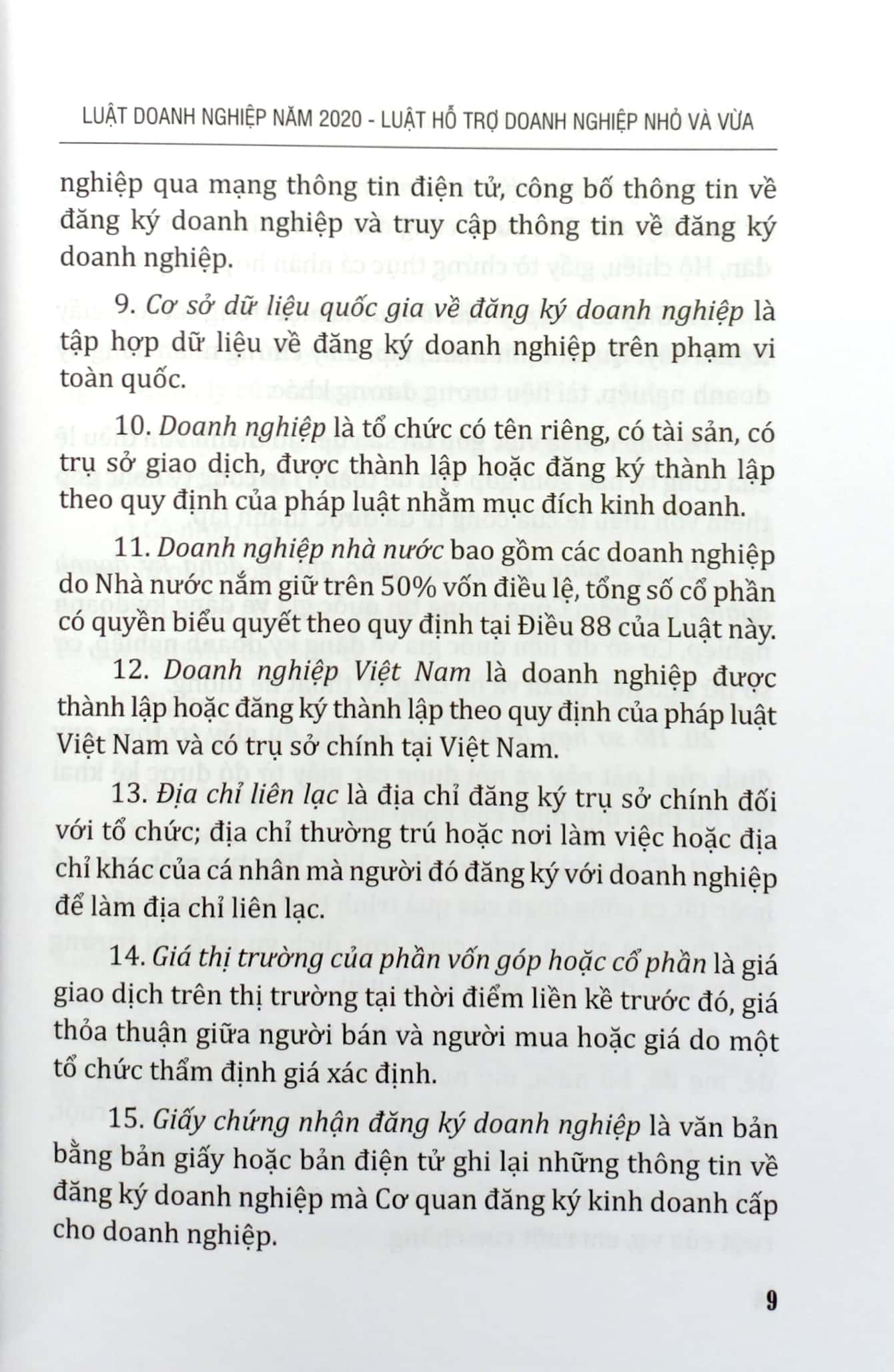 Luật Doanh nghiệp năm 2020 được ban hành ngày 17 tháng 6 năm 2020, tại kỳ họp thứ 9, Quốc hội nước Cộng hòa xã hội chủ nghĩa Việt Nam khóa XIV. Các quy định trong Luật Doanh nghiệp 2020 được coi là có nhiều điểm mới, tạo thuận lợi cho doanh nghiệp trong giai đoạn gia nhập thị trường nói riêng và trong quá trình đầu tư, kinh doanh nói chung.