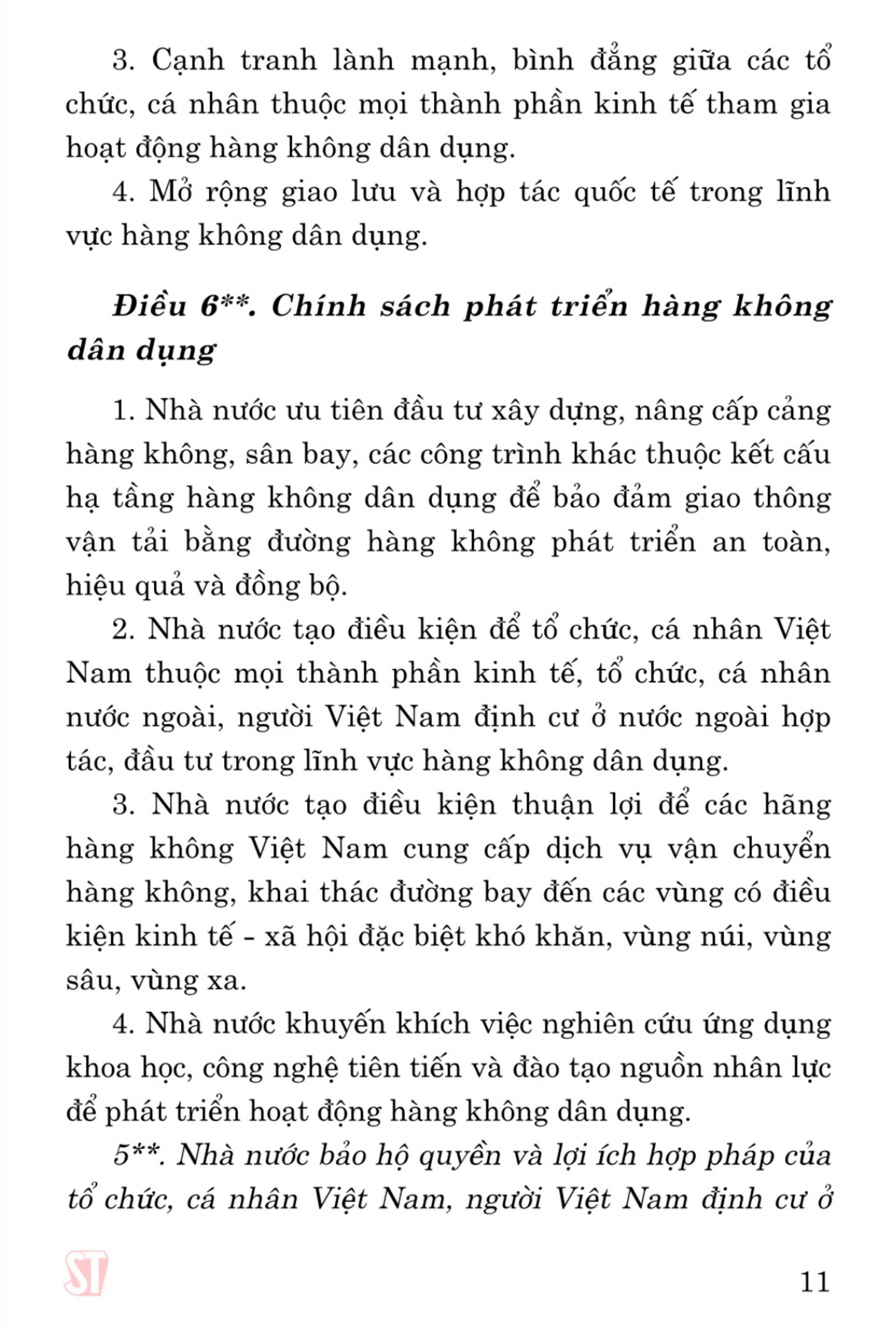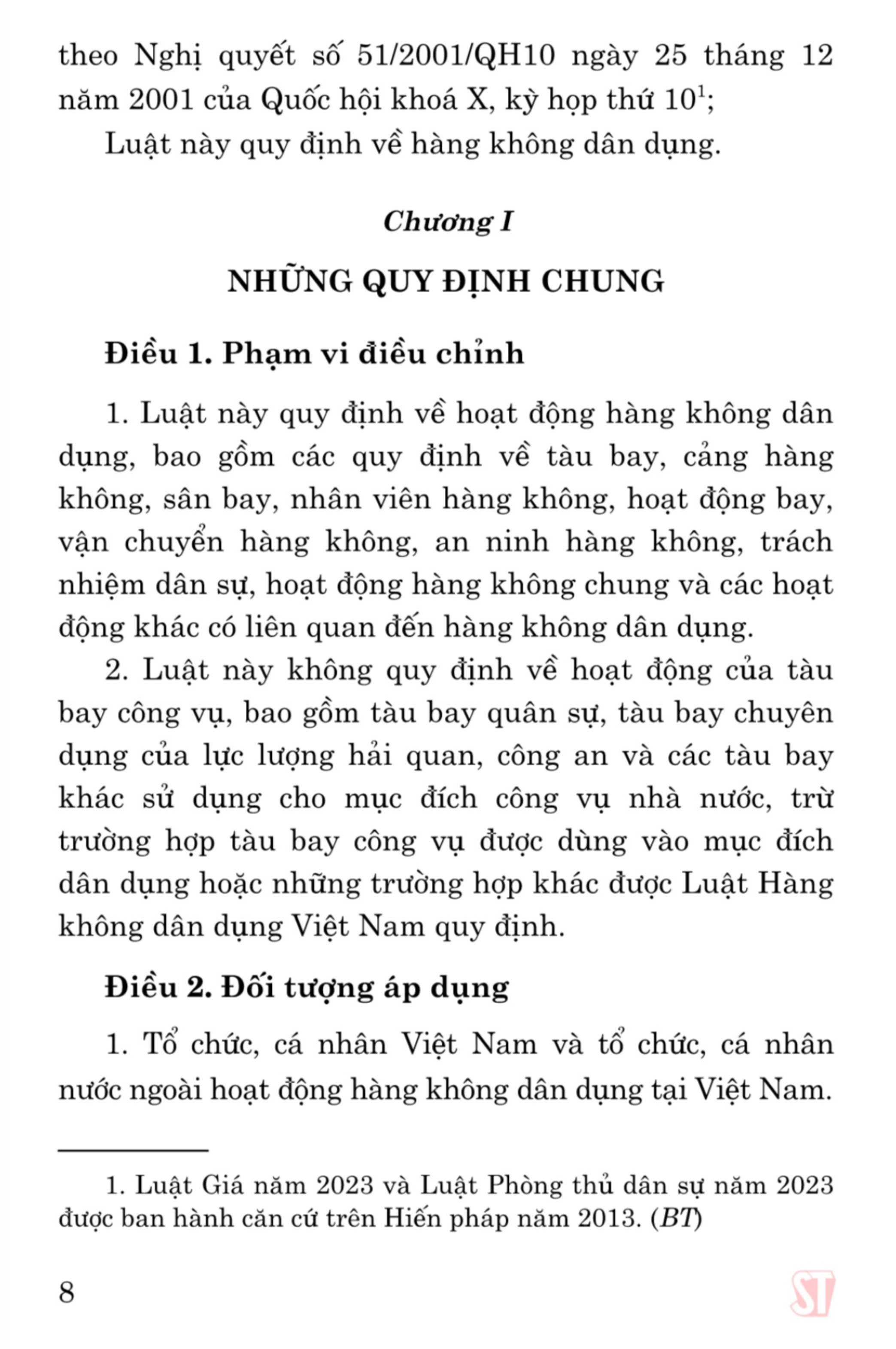 Mua tại Tiktok- Luật này quy định về hoạt động hàng không dân dụng, bao gồm các quy định về tàu bay, cảng hàng không, sân bay, nhân viên hàng không, hoạt động bay, vận chuyển hàng không, an ninh hàng không, trách nhiệm dân sự, hoạt động hàng không chung và các hoạt động khác có liên quan đến hàng không dân dụng.