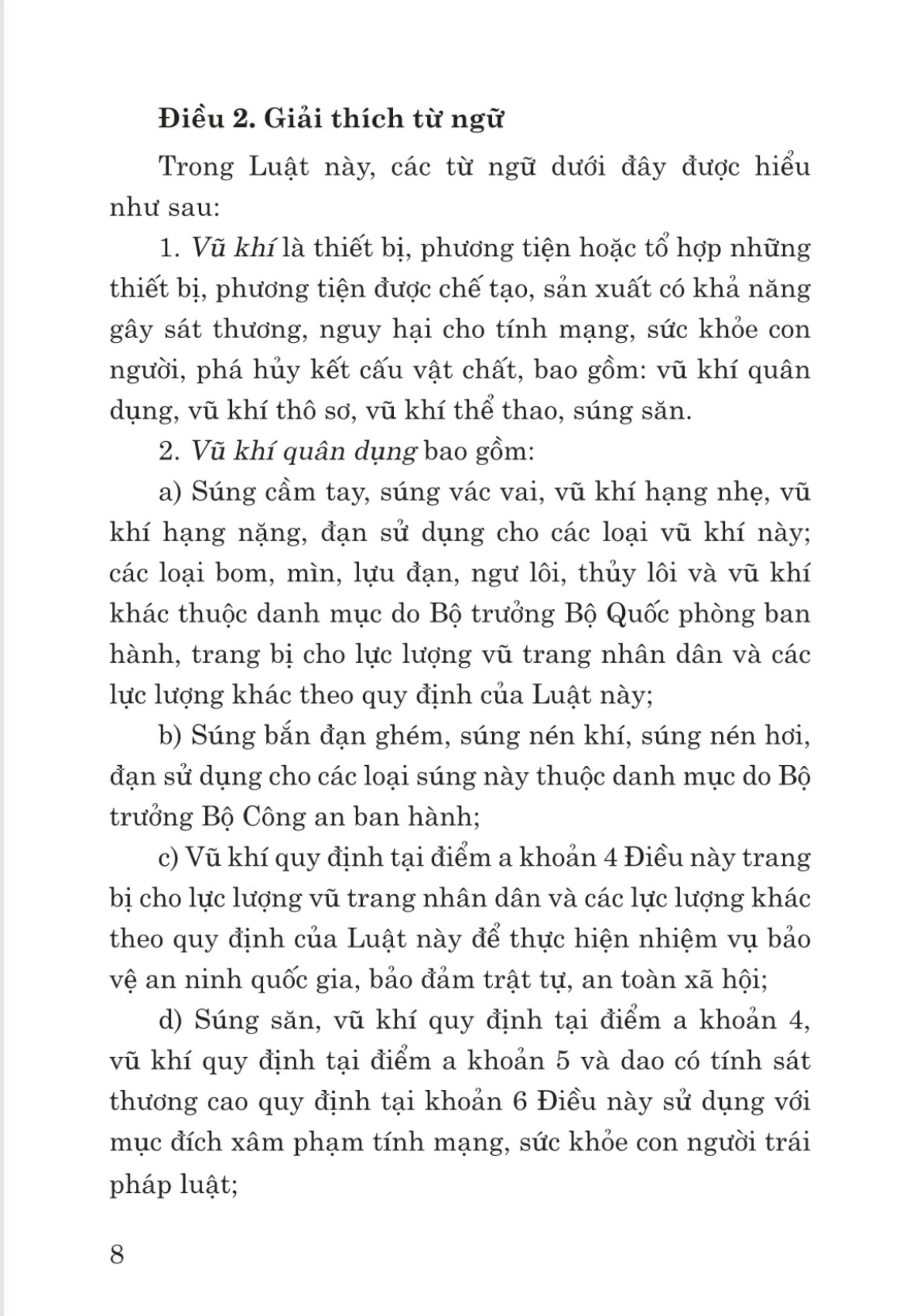 Luật Quản lý, sử dụng vũ khí, vật liệu nổ và công cụ hỗ trợ (sửa đổi) được Quốc hội thông qua gồm 8 chương, 75 điều.
