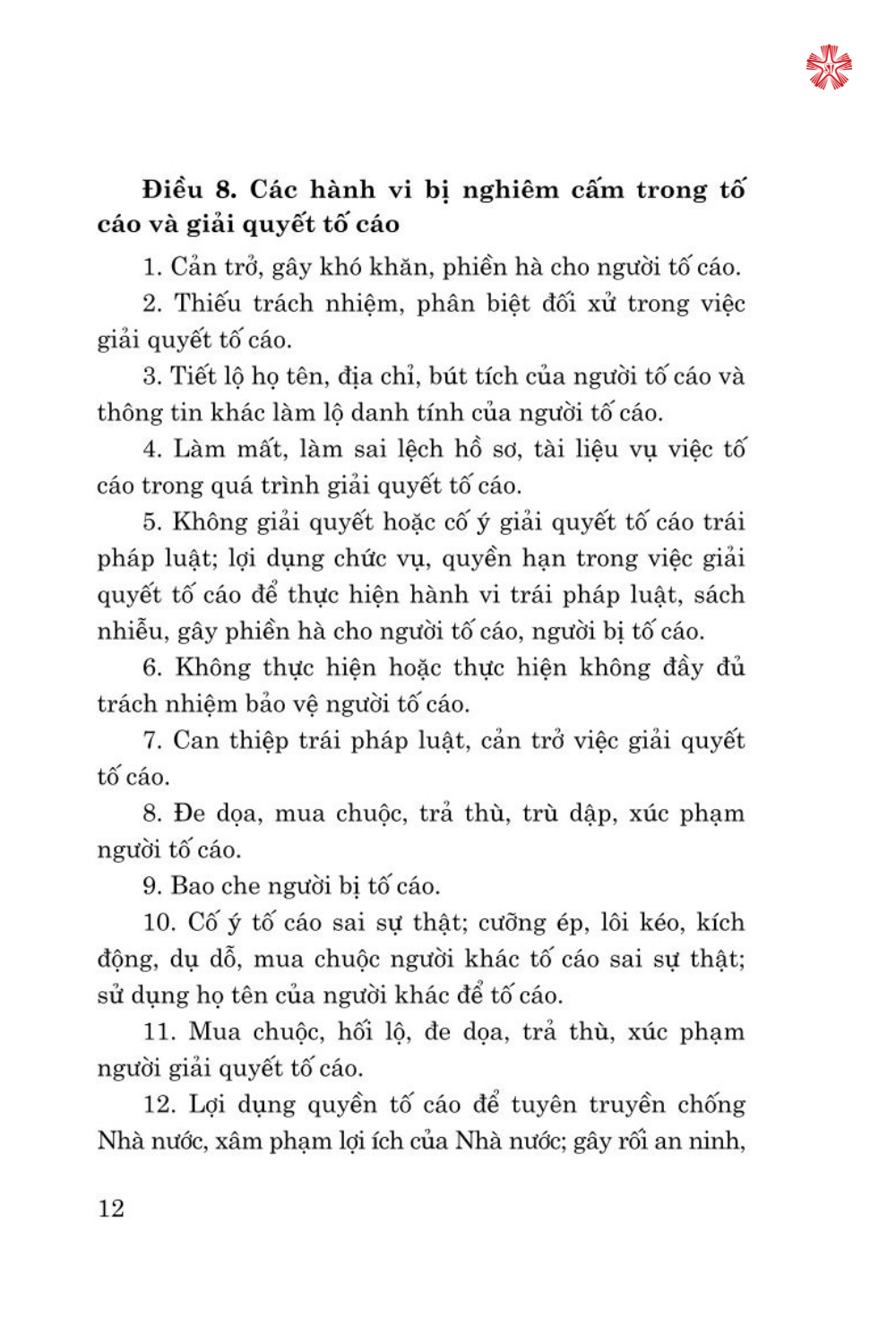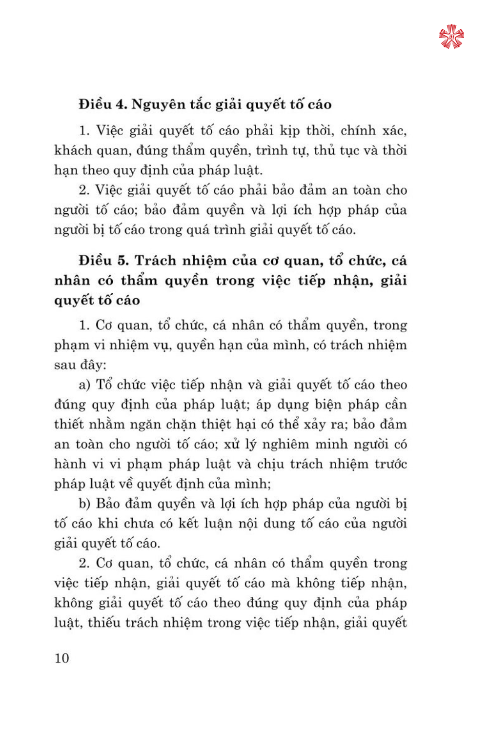 Chương 4: Giải quyết tố cáo đối với hành vi vi phạm pháp luật về quản lý nhà nước trong các lĩnh vực.