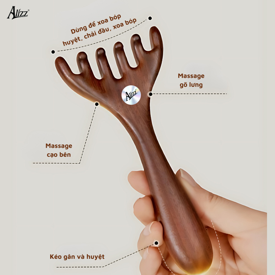 Chất liệu gỗ đàn hương, chắc chắn, an toàn cho da đầu.
