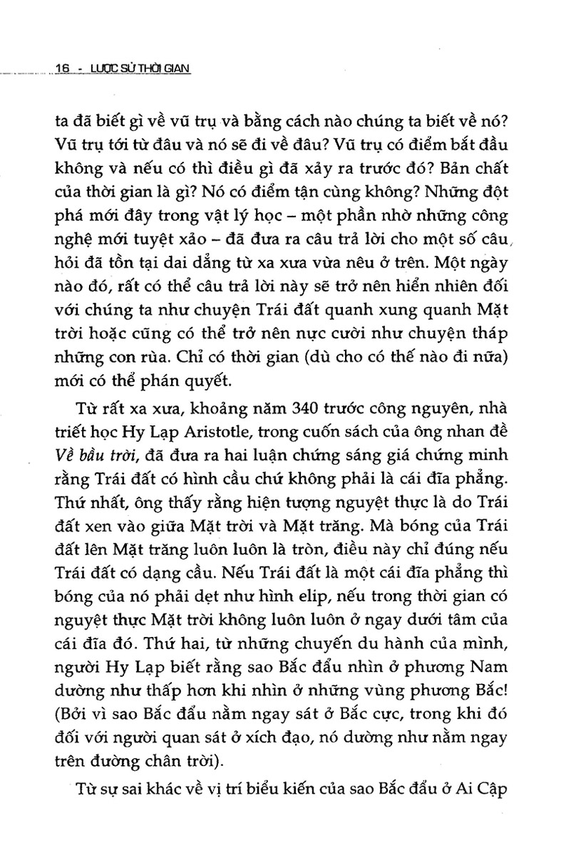 Bằng ngôn ngữ sáng sủa, lập luận chặt chẽ rất thuyết phục, và sự dí dỏm rất riêng, tác giả Stephen Hawking đặt ra cho mình nhiệm vụ diễn tả những điều phức tạp nhất trong vật lý học một cách dễ hiểu đối với mọi người, không dùng bất kỳ công thức toán học nào, trừ phương trình nổi tiếng của Einstein: E = mc2