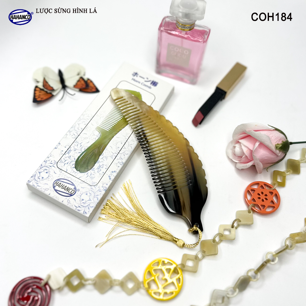 ✨Lược Sừng Hình Lá Bằng Sừng Uốn Lượn Tinh Xảo Xuất Nhật - COH184