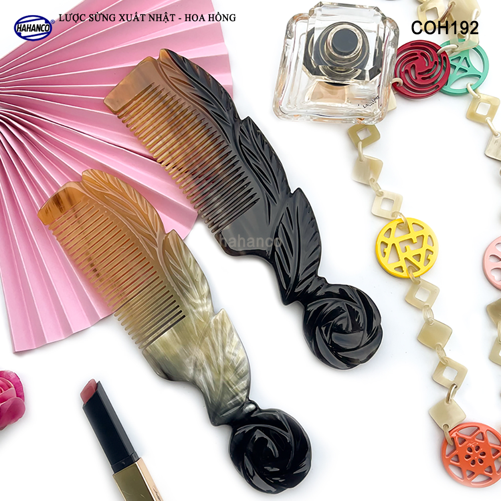 Mua tại TiktokNgười Việt dùng hàng Việt, ủng hộ để duy trì nghề và phát triển nghề thủ công tại các vùng quê. ️ Video chi tiết sản phẩm ️ Giải mã lược sừng do VTV thực hiện Lược sừng xuất khẩu sang thị trường Nhật Bản - EU - Mỹ. - Đây là mẫu lược sừng VIP màu vân nưa, được thiết kế hình bông hoa hồng biểu tượng của tình yêu, làm quà tặng rất ý nghĩa, với kích thước lớn, phù hợp với toàn bộ người sử dụng, có thể để bàn trang điểm rất sang. Sản xuất với nhiều công đoạn phức tạp, Được các nghệ nhân của HAHANCO thổi hồn vào chiếc lược này, tạo ra các họa tiết và đường nét uốn lượn sắc sảo, làm cho chiếc lược cổ điển không còn nhàm chán mỗi khi bạn cầm trên tay. Những chiếc răng lược được các bàn tay khéo léo mài dũa từng chiếc một cẩn thận để đạt được độ nhẵn bóng, khi chải tóc sẽ không làm gãy và rụng tóc. MÔ TẢ SẢN PHẨM: - Mã Số: COH192 (Lược Hoa Hồng) - Số lượng: 1 chiếc - Kích thước: Dài 20 x 6cm (có sai số) - Chất liệu: Sừng bò Châu Phi nhập khẩu. - Màu sắc: Đây là mẫu lược sừng có màu sắc tự nhiên đặc biệt, trên thân lược có nhiều màu khác nhau (Trắng + đen vân nưa màu sừng nguyên bản) mỗi chiếc 1 màu, không có chiếc nào giống nhau (giao ngẫu nhiên)