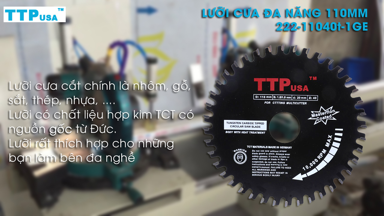 LƯỠI CƯA ĐA NĂNG TTPusa THÔNG SỐ KỸ THUẬT: 1. Lưỡi cưa tròn đa năng 110mm TTPusa 222-11040T-1GE