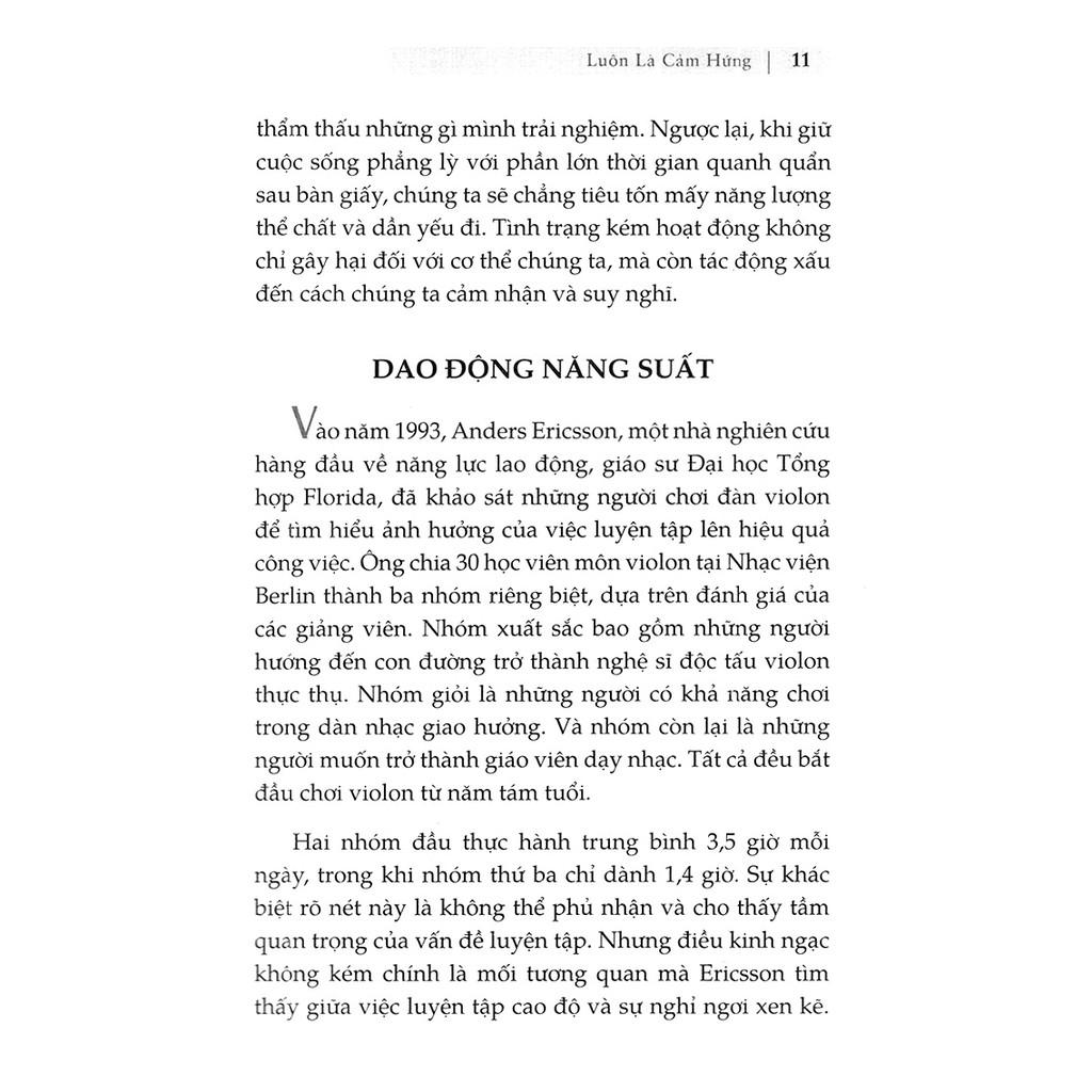 Hàng loạt các nhà lãnh đạo cấp cao của Google, S, Ford, Ernst & Young… đã tạo ra sự khác biệt, đạt thành công vượt bậc, giúp tổ chức của họ ngày lớn mạnh nhờ phương thức làm việc thông minh của Tony Schwartz qua cuốn “Luôn là cảm hứng” đồng tác giả của cuốn sách bán chạy nhất trên New York Times “The Power of Full Engagement” (Sức mạnh của sự tập trung cao độ).p>Gooda tin rằng cuốn sách sẽ mang lại kiến thức thật bổ ích cùng những trải nghiệm thật tuyệt vời, hy vọng đây sẽ là 1 cuốn sách quý trên kệ sách của bạn!