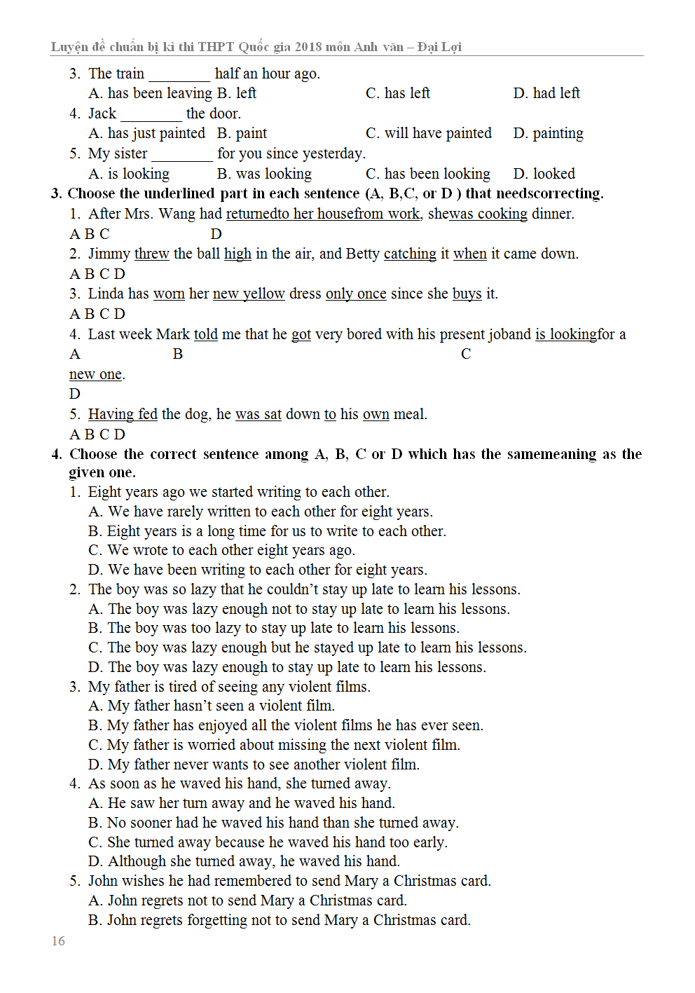 Luyện Đề Chuẩn Bị Kì Thi THPT Quốc Gia 2018 Tiếng Anh