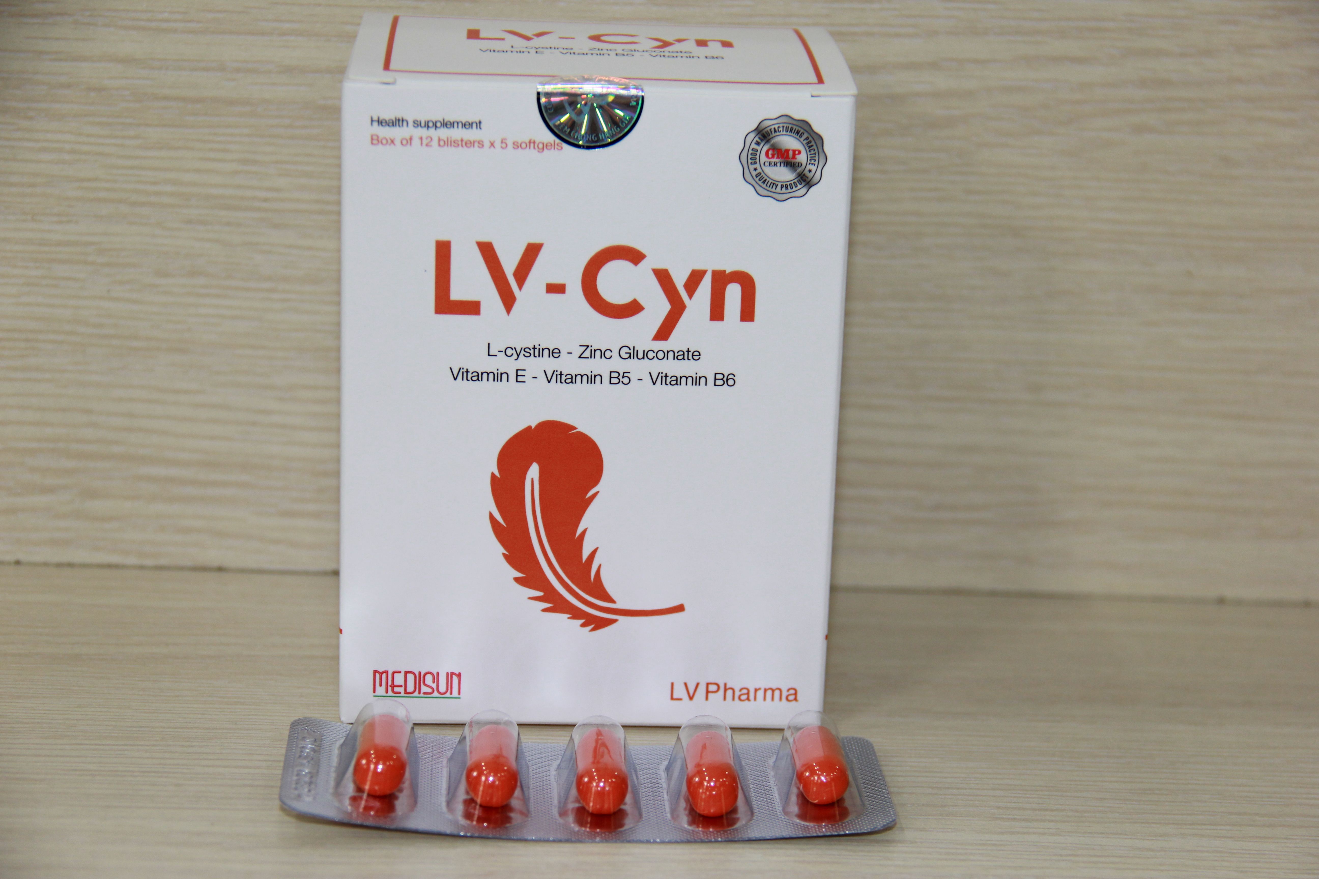 LV - CYN Giải pháp hỗ trợ làm đẹp về Da, Móng, Tóc. 1. Thành phần: - L - cystine: 500mg - Kẽm Gluconat: 30mg - Vitamin E: 10mg - Vitamin B5: 5mg - Vitamin