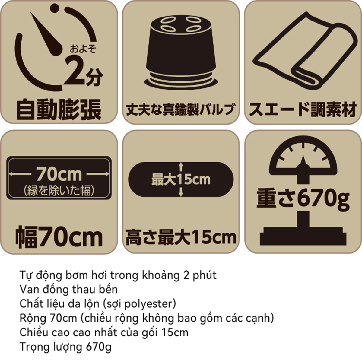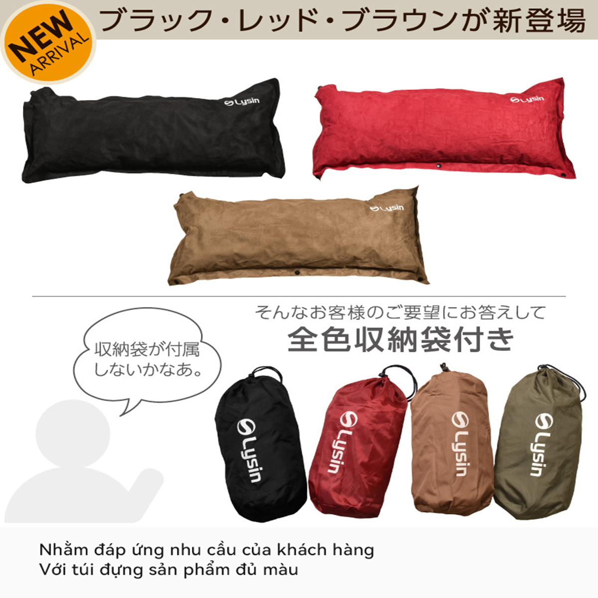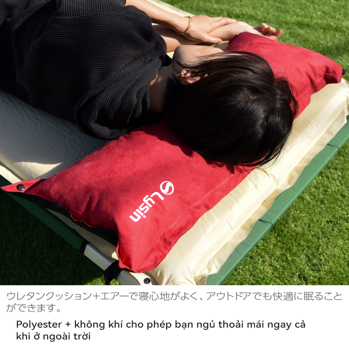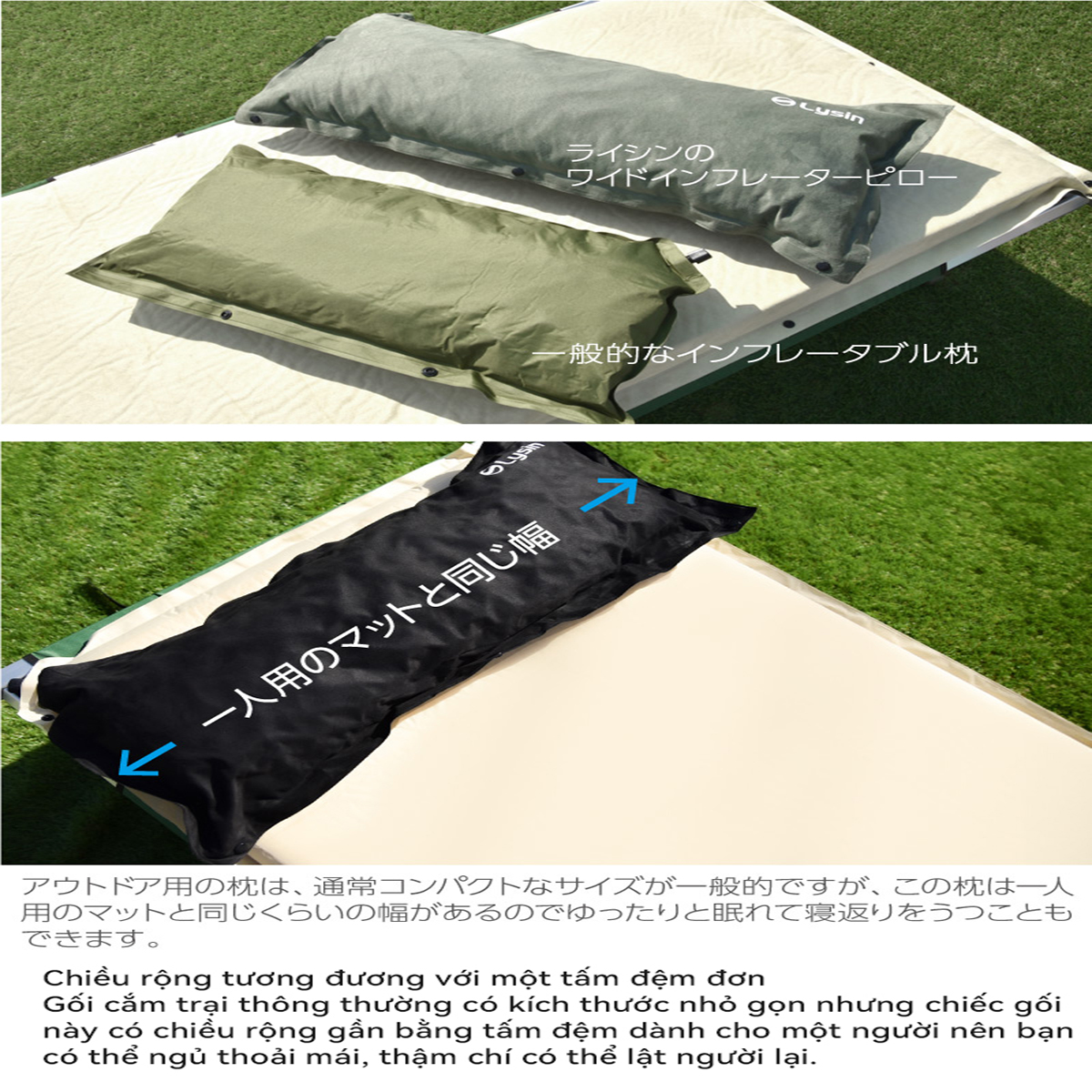 ✨Lysin - gối đầu tự bơm hơi chất liệu da lộn siêu rộng 70cm thoải mái cắm trại dã ngoại camping, picnic du lịch