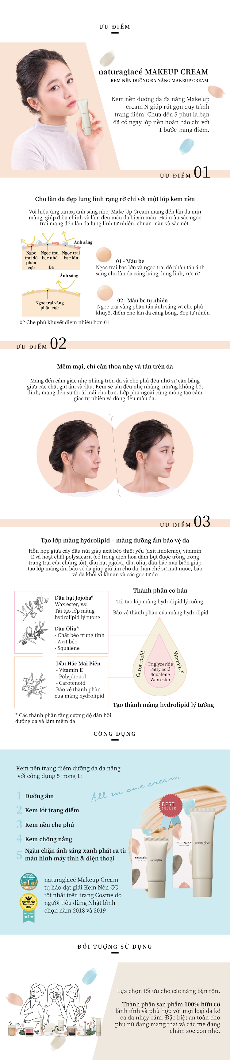 KEM NỀN HỮU CƠ DƯỠNG DA ĐA NĂNG MAKE UP CREAM & MOIST BB CREAM