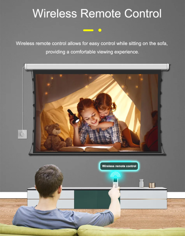 Tương thích tốt với các dòng máy chiếu Full HD, 2K, 4K, 8K. Tỷ lệ khung hình 16:9 – phù hợp cho nhu cầu giải trí, phim ảnh và thuyết trình chuyên nghiệp. Các kích thước có sẵn: 100”, 120”, 135”, 150”. ️ Hệ thống điều khiển & động cơ: