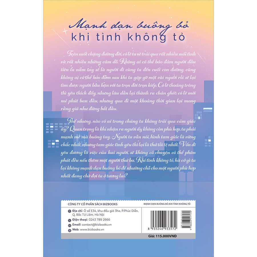 Cuốn sách Mạnh dạn buông bỏ khi tình không tỏ là cuốn sách viết về những cảm xúc trong tình yêu của những người trẻ. Ta như thấy mình qua những cảm xúc chông chênh, lên bổng xuống trầm của thời thanh xuân. Người ta cứ sợ đau nhưng không hề biết rằng, nỗi đau dai dẳng bấy lâu nay họ chịu đựng còn lớn hơn thế gấp nhiều lần. Hãy mạnh dạn buông bỏ, đừng cứ mãi cố chấp níu giữ những gì không xứng đáng.