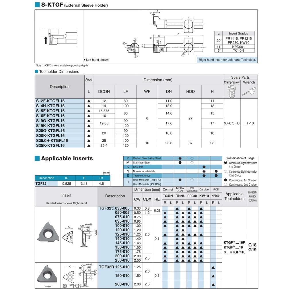 Mảnh dao tiện rãnh Carbide không phủ Kyocera Model TGF32R125-010 KW10 Hàng Chính Hãng Chất Lượng Uy Tín