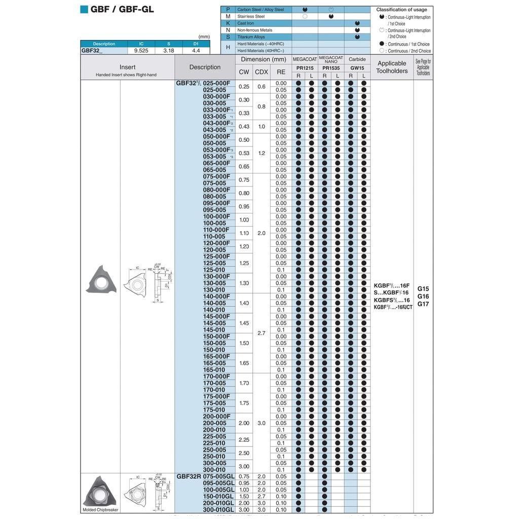 Compatible holder: KGBFR1010JX-16F, KGBFR1212JX-16F, KGBFR1616JX-16F, KGBFR2020JX-16F, S16F-KGBFL16, S19G-KGBFL16, S19K-KGBFL16, S20G-KGBFL16, S20K-KGBFL16, S22K-KGBFL16, S25.0 KGBFSL1010JX-16, KGBFSL1212JX-16, KGBFSL1616JX-16, KGBFR1220H-16FJCT, KGBFR1625H-16FJCT, KGBFR2025H-16FJCT