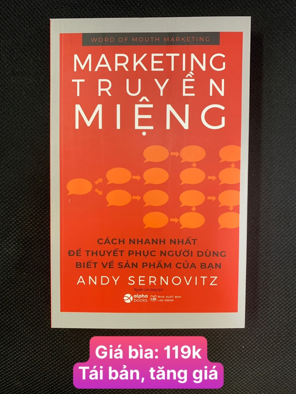 Và nếu, bạn cũng đang là một người quan tâm đến vấn đề này: “quảng cáo với chi phí thấp nhất nhưng lại đạt được hiệu quả lớn nhất” thì “Marketing truyền miệng” là quyển sách mà bạn không thể bỏ qua. Được viết bởi nhà marketing hàng đầu thế giới - Andy Sernovitz, quyển sách này giới thiệu đầy đủ mọi khía cạnh của marketing truyền miệng qua ba phần chính: “Tìm kiếm người nói – Đề tài ấn tượng – Công cụ truyền tải”. Không chỉ đưa ra những phần lý thuyết suông đấy sáo rỗng, quyển sách còn đưa ra cho bạn những bài tập ứng dụng làm sao để thực hiện công việc kinh doanh của công ty bạn và duy trì nó trong một thời gian dài, kèm theo đó là những ví dụ thực tế về những thành quả vượt trội mà các thương hiệu hàng đầu thế giới đã đạt được nhờ vào “Marketing truyền miệng”.
