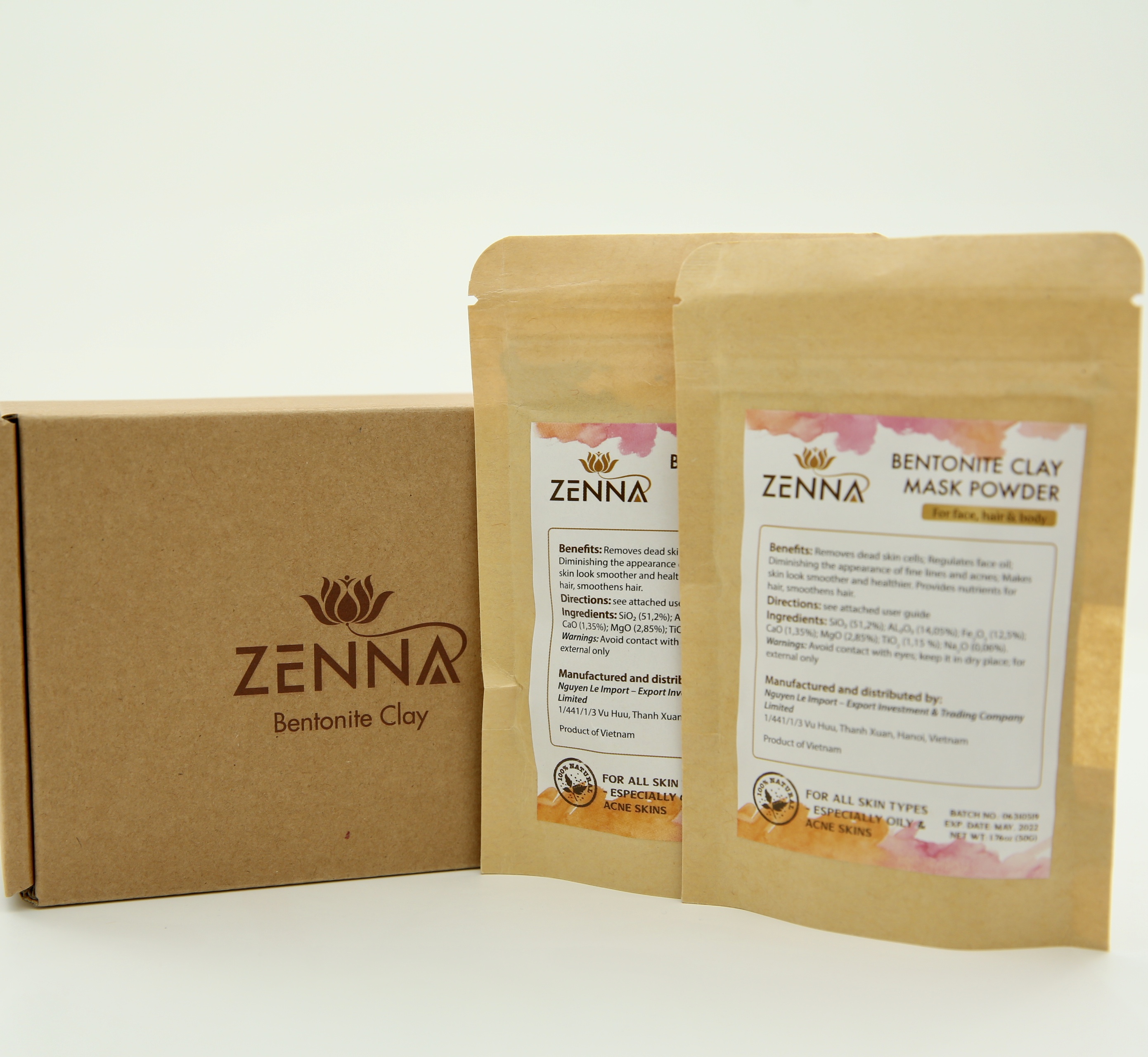 ✨Mặt nạ bùn khoáng núi lửa kiểm soát dầu và mụn, thải độc tố, tái tạo da ZENNA Bentonite Clay 100g (2 túi 50g) - Set tiết kiệm - Phù hợp cho mọi loại da đặc biệt da dầu và mụn