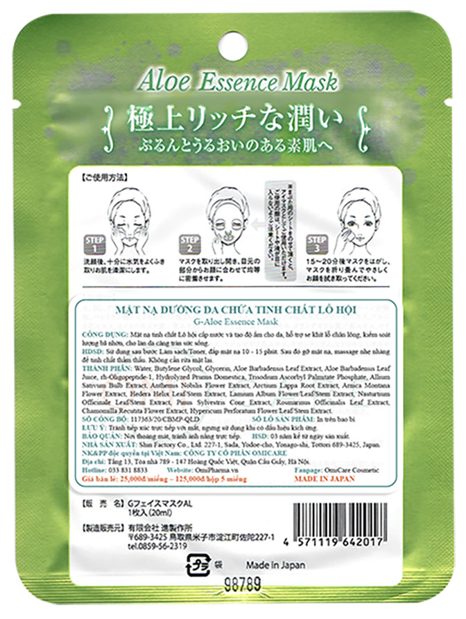 ✨Mặt nạ dưỡng ẩm tinh chất Lô Hội G Face Mask AL ( Hộp 5 miếng)