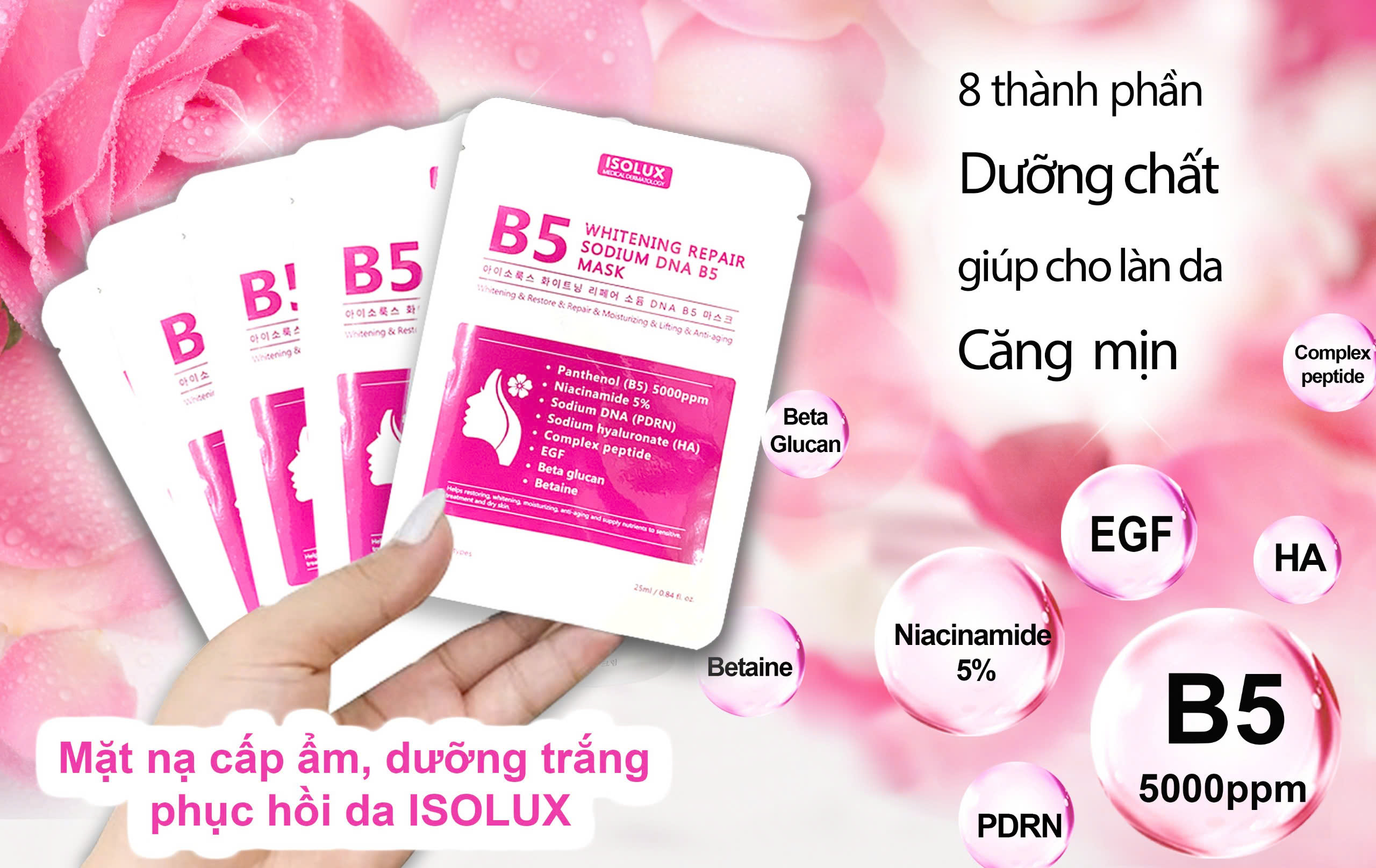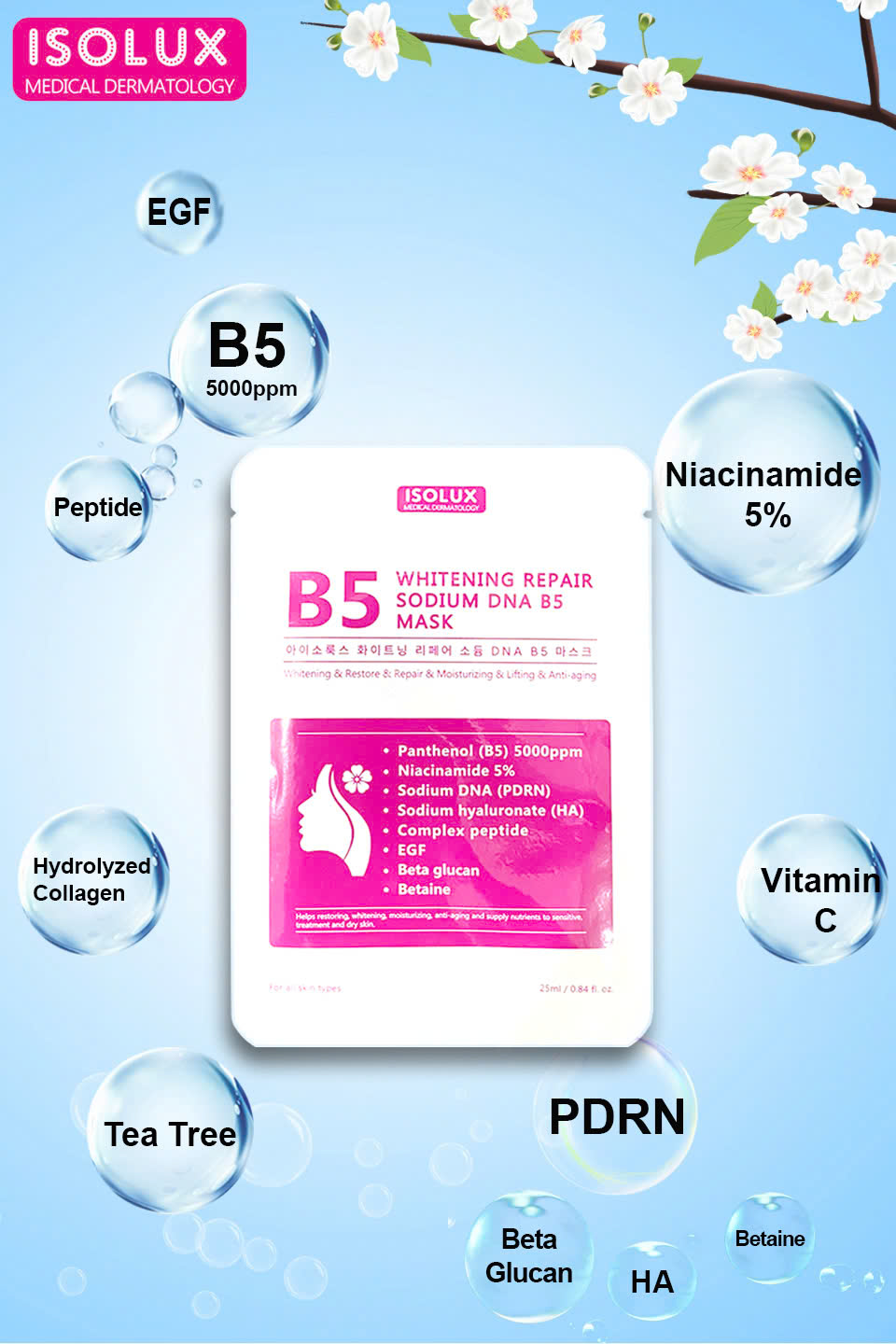 ✨Mặt nạ ISOLUX Whitening repair sodium DNA B5 mask Hàn Quốc 25ml hạn 2027 dưỡng sáng phục hồi cấp ẩm căng bóng