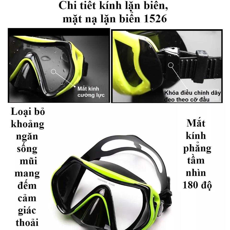 Kính lặn ống thở với 2 van ngăn nước 100%, mặt nạ lặn với mắt kính cường lực cao cấp THÀNH NAM