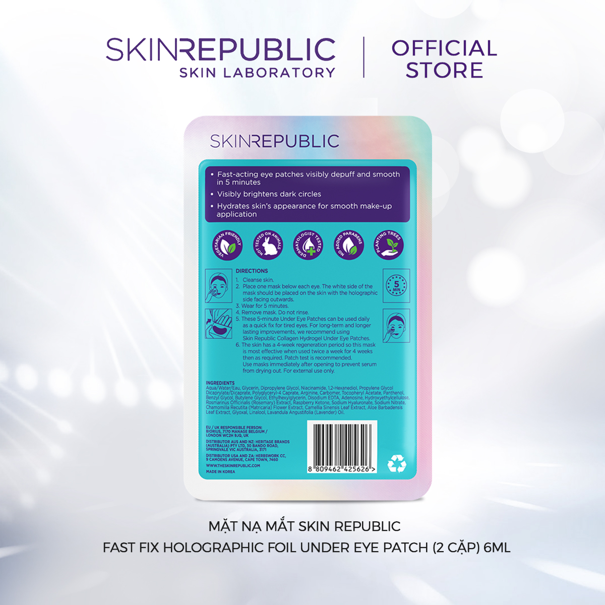 ✨Mặt nạ mắt Skin Republic Fast Fix Holographic Foil Under Eye Patch (2 cặp) 6ml