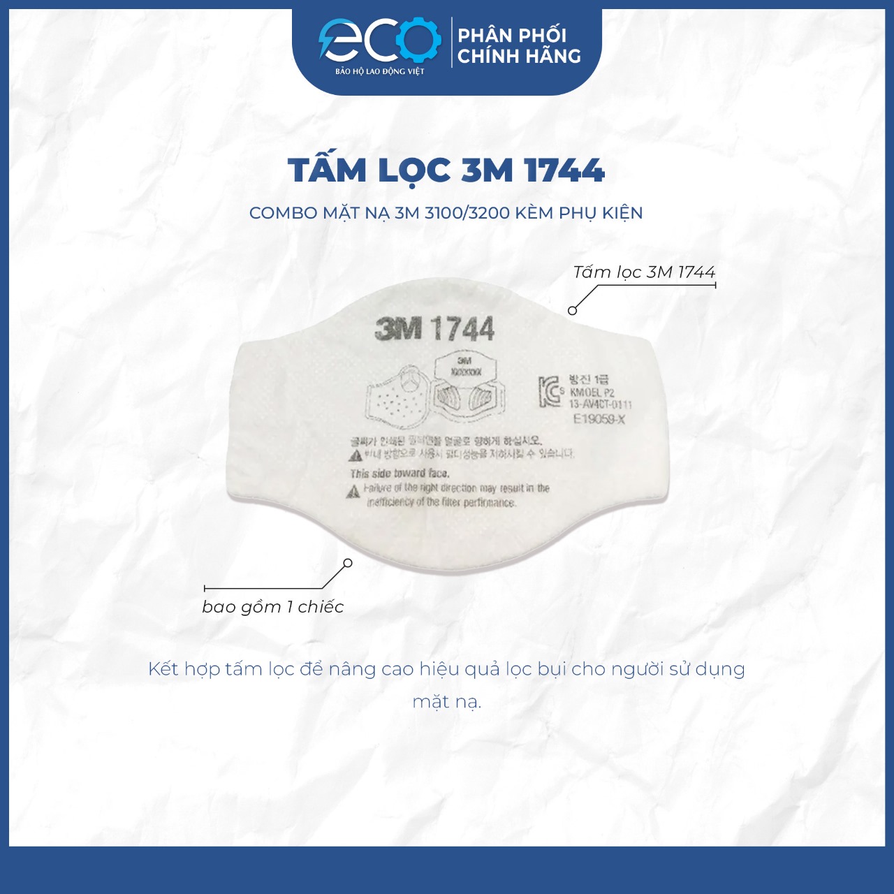 Tấm lọc bụi 3M 1744 được trang bị lớp than hoạt tính, được thiết kế phù hợp cho việc sử dụng cùng các mặt nạ nửa mặt với một phin lọc trong dòng sản phẩm