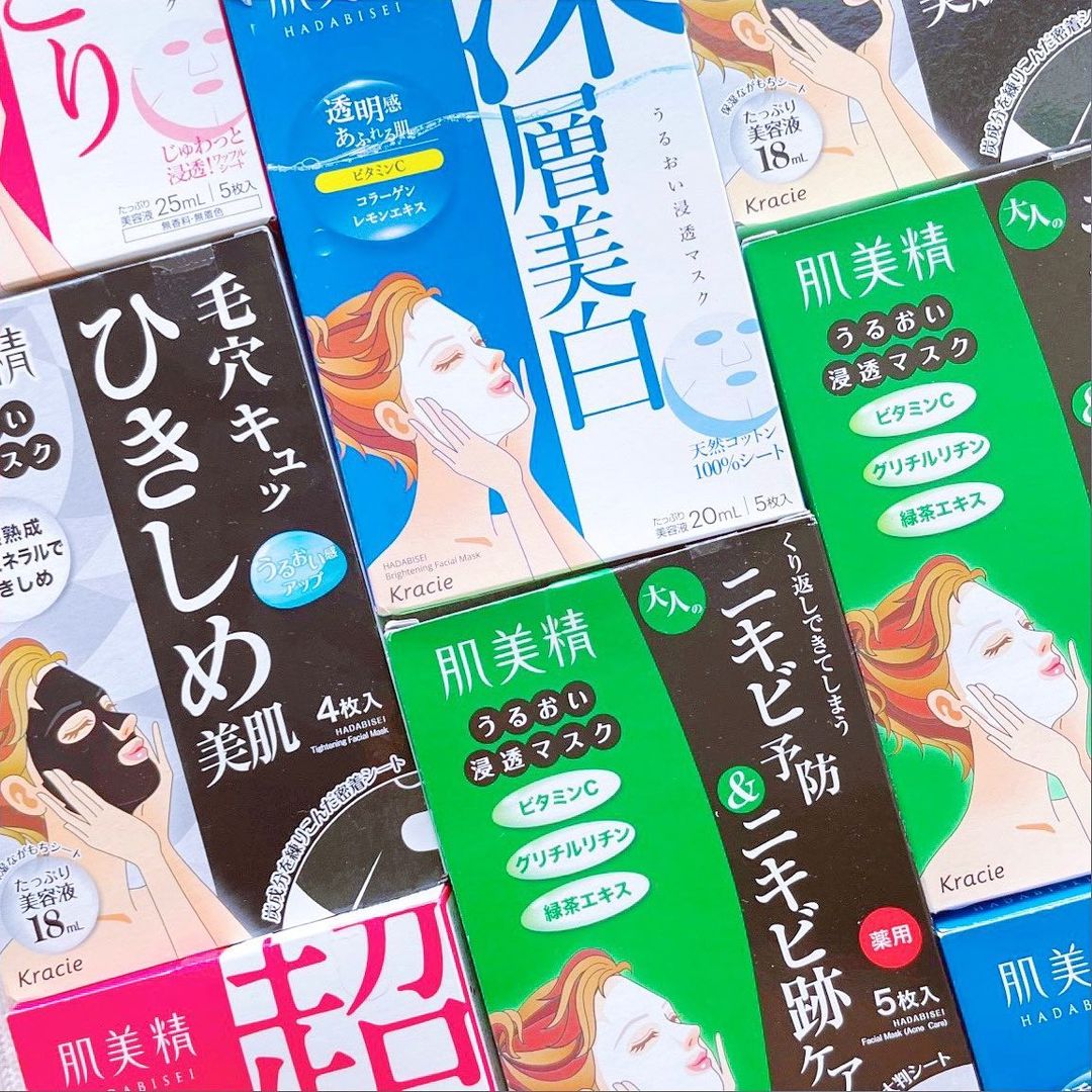 Mặt Nạ Trà Xanh Kracie Hadabisei Dưỡng Ẩm Và Ngừa Mụn (Hộp 5 Miếng Lẻ)