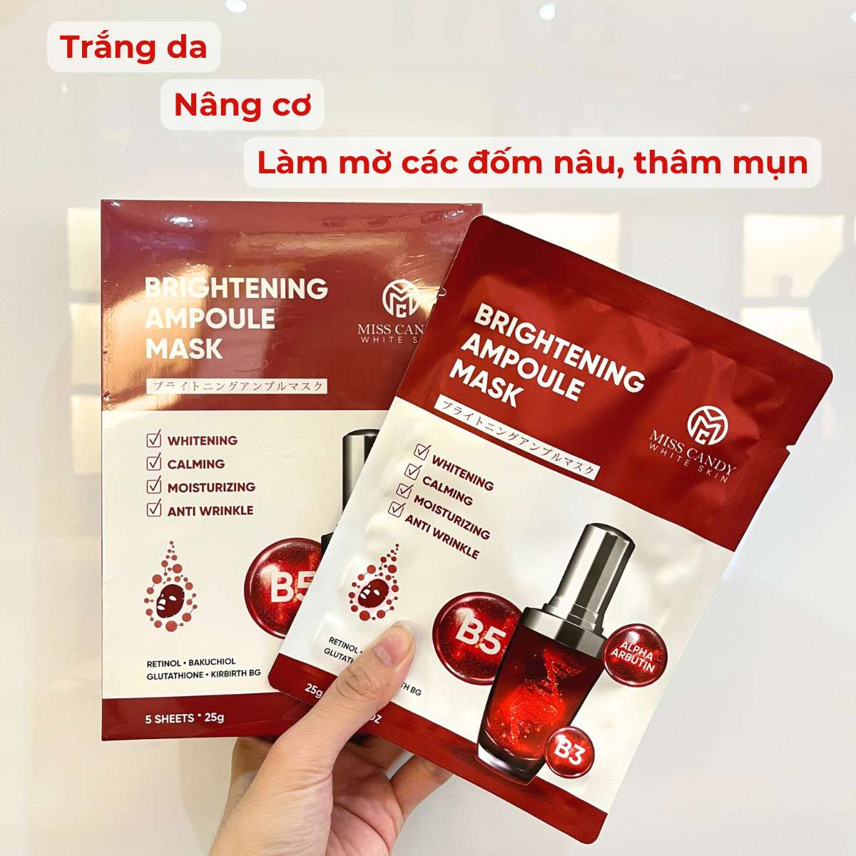 ✨Mặt Nạ Trẻ Hóa & Phục Hồi Da BRIGHTENING AMPOULE MASK Miss Candy (Hộp 5 Miếng x 25g)