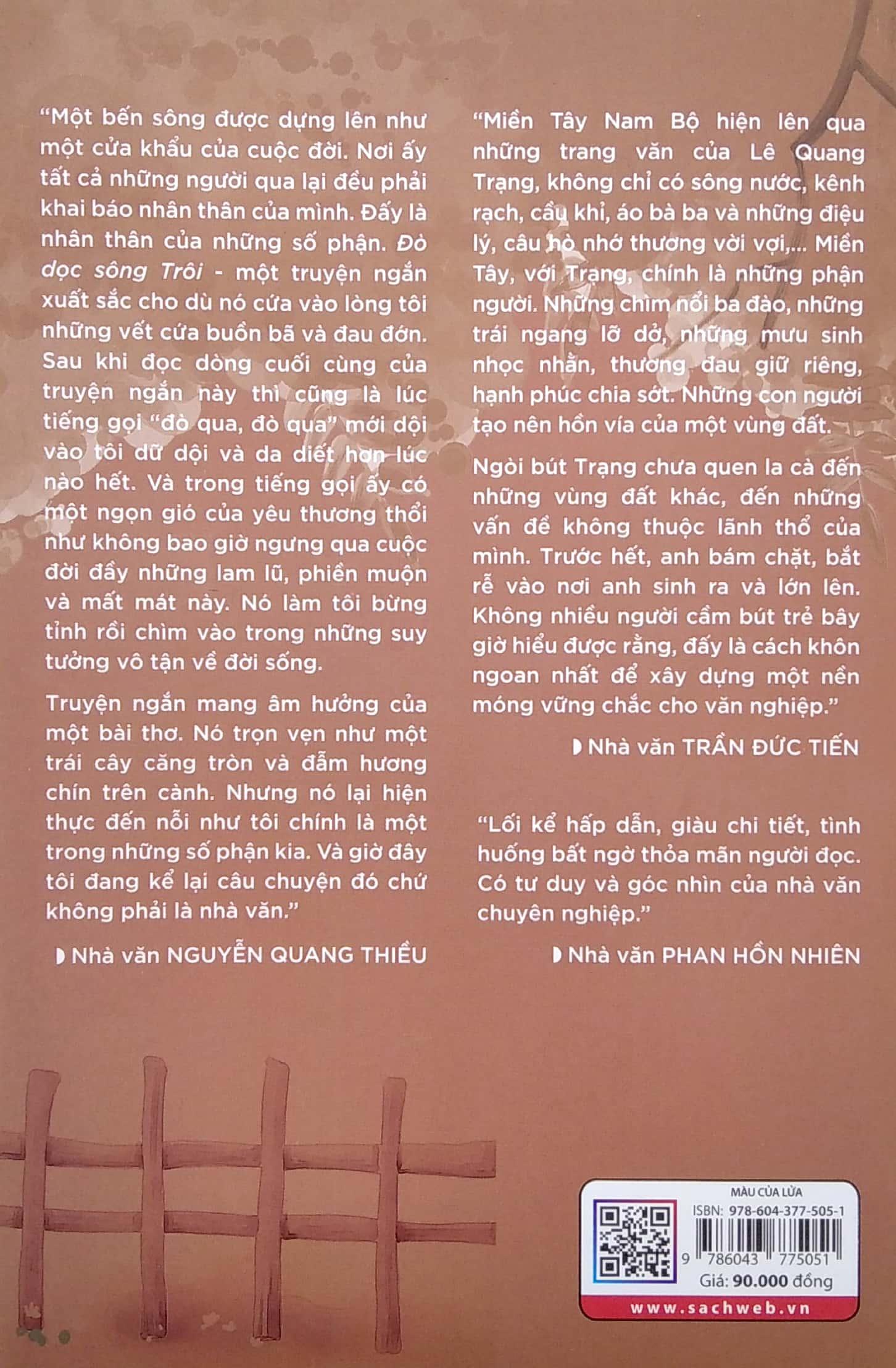 Màu Của Lửa Tập truyện ngắn “Màu của lửa” cho thấy phong độ viết ổn định của Lê Quang Trạng và một thái độ làm nghề nghiêm túc, không chấp nhận sự thỏa hiệp, bằng lòng với bản thân. Cũng vẫn là vùng sông nước quen thuộc của người dân Nam Bộ đã được nhiều nhà văn khai thác và ghi dấu ấn trong văn học, nhưng tác giả biết tìm ra được màu sắc của riêng mình. Những phận đời hiện lên nặng trĩu trăn trở, ưu tư. Mỗi người, từ góc nhìn của mình, cá tính văn chương của mình, nội lực của mình, sẽ viết nên những tác phẩm thật sự khác biệt, không lẫn với ai. Chính tính cá biệt trong hoạt động sáng tạo khiến cho văn chương nói riêng và các loại hình nghệ thuật nói chung luôn có sự hấp dẫn khó cưỡng. Và Lê Quang Trạng cũng đã tạo ra sự riêng có với lối kể hấp dẫn, giàu chi tiết, tình huống bất ngờ thỏa mãn người đọc. Có tư duy và góc nhìn của nhà văn chuyên nghiệp.