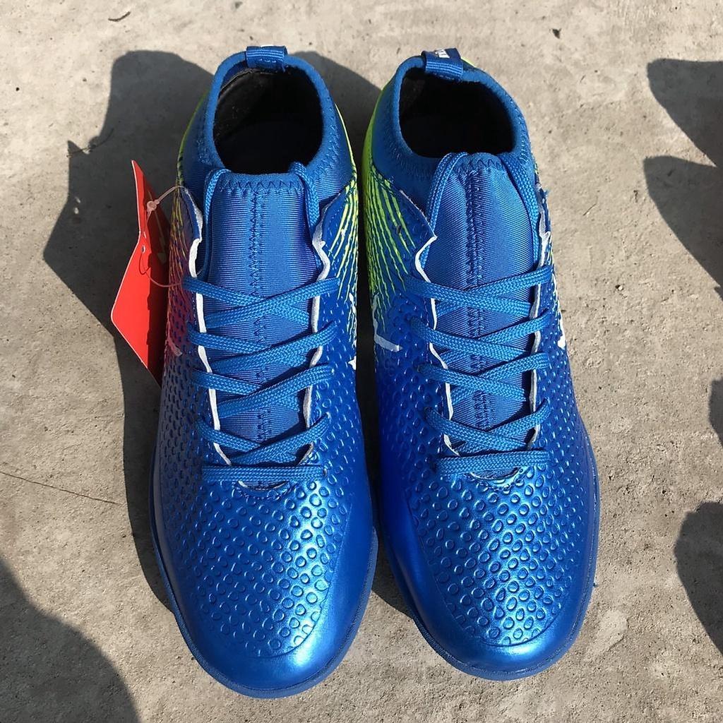 Giày đá bóng futsal mới màu xanh quân đôi cho độ bám sàn tốt cũng như có độ bền cùng độ dẻo dai cao, là chọn lựa lý tưởng của những bạn nam yêu thích