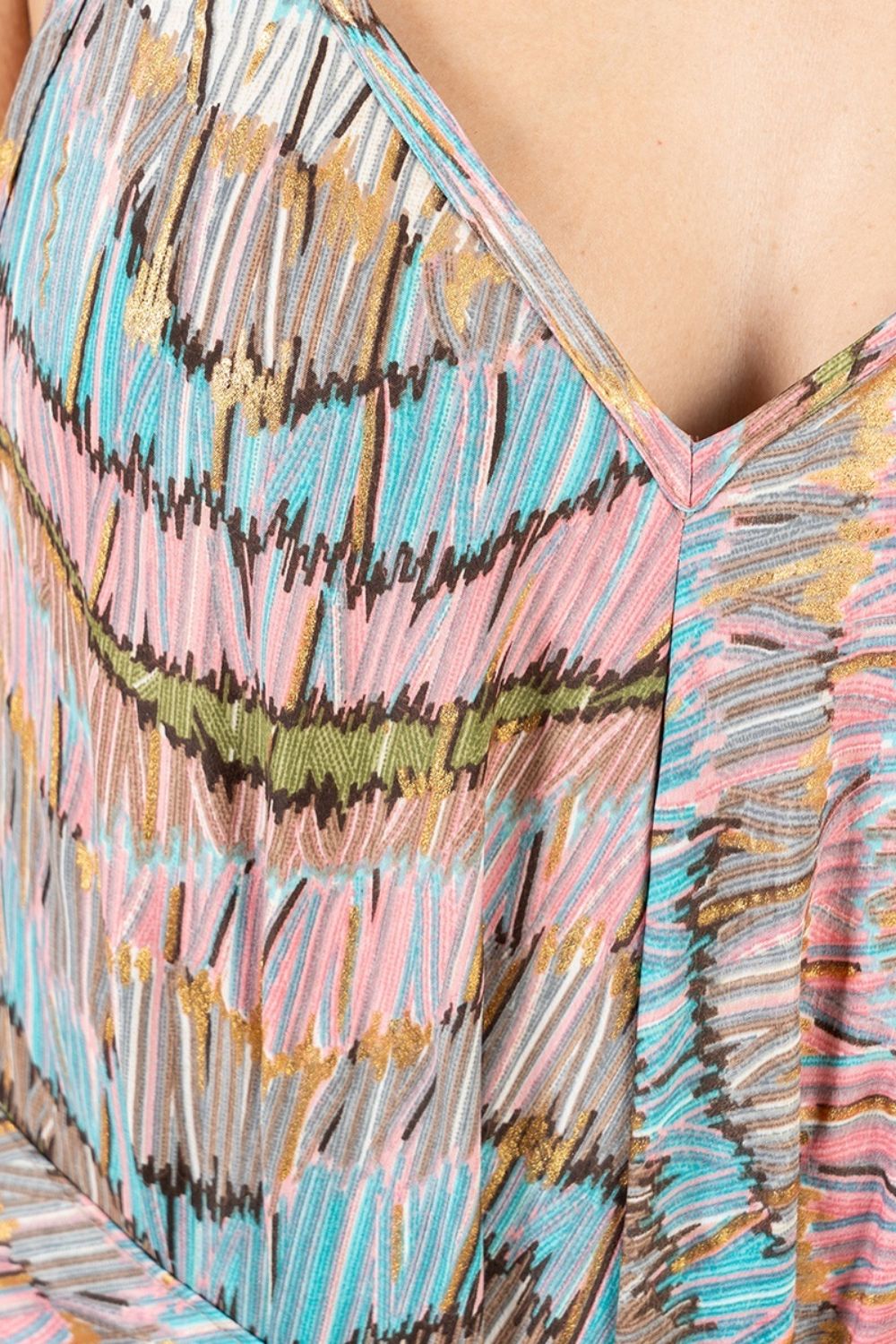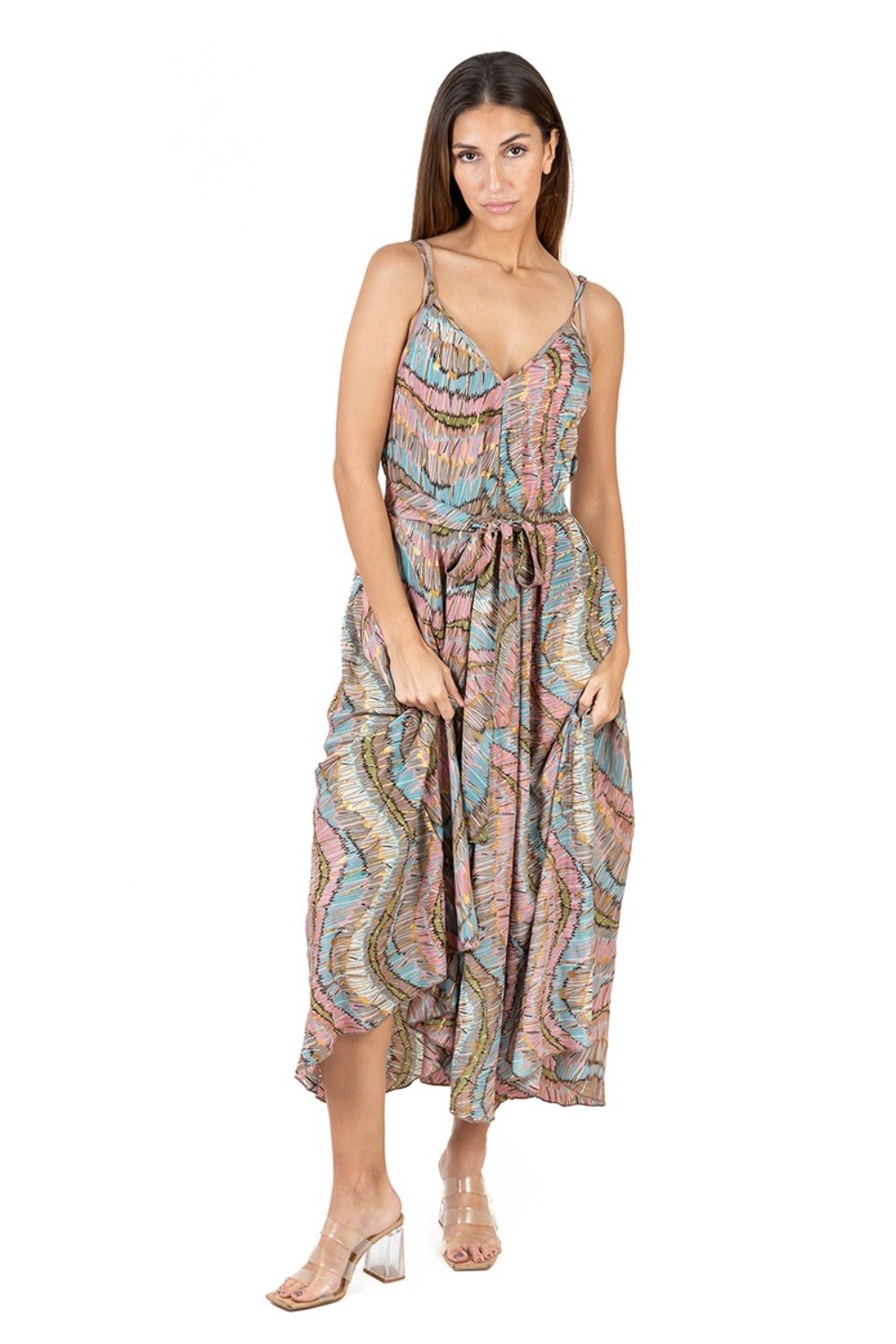 Maxi 2 Dây Isla Bonita, chất lụa mềm mại, thoáng mát. nền vải vẽ ánh kim tinh tế. Dây nơ rời cột nhẹ ở eo. Có thể mặc cột nơ hoặc không nơ như đầm