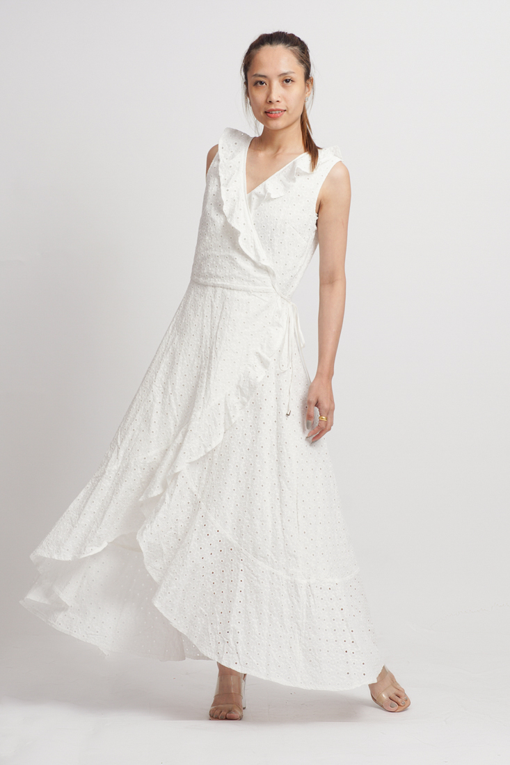 Maxi Cotton Cao Cấp Luna Llena, nền vải Lazer Cut độc đáo, tạo lỗ như ren, sang trọng, chất cotton dày dặn, thân trước đắp chéo, có thể tăng giảm eo. Lớp lót cao cấp.