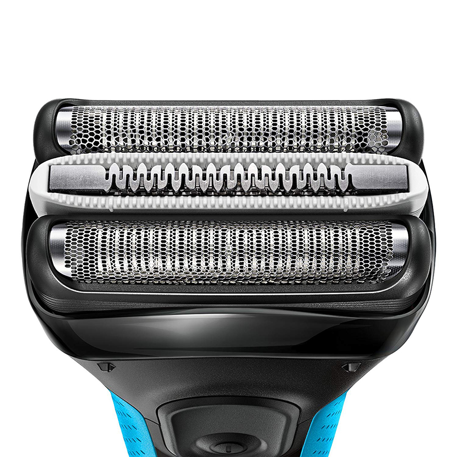 - Triple action cutting system: Việc cạo râu trên máy cạo râu Braun thay vì chỉ được thực hiện bằng một lá cạo thì giờ đây được thực hiện cùng lúc bởi 2 lá cạo và một lược cạo ở giữa. Nhờ có sự kết hợp hoàn hảo này nên máy cạo râu Braun sẽ đạt được hiệu quả cạo sạch tối ưu nhất có thể.