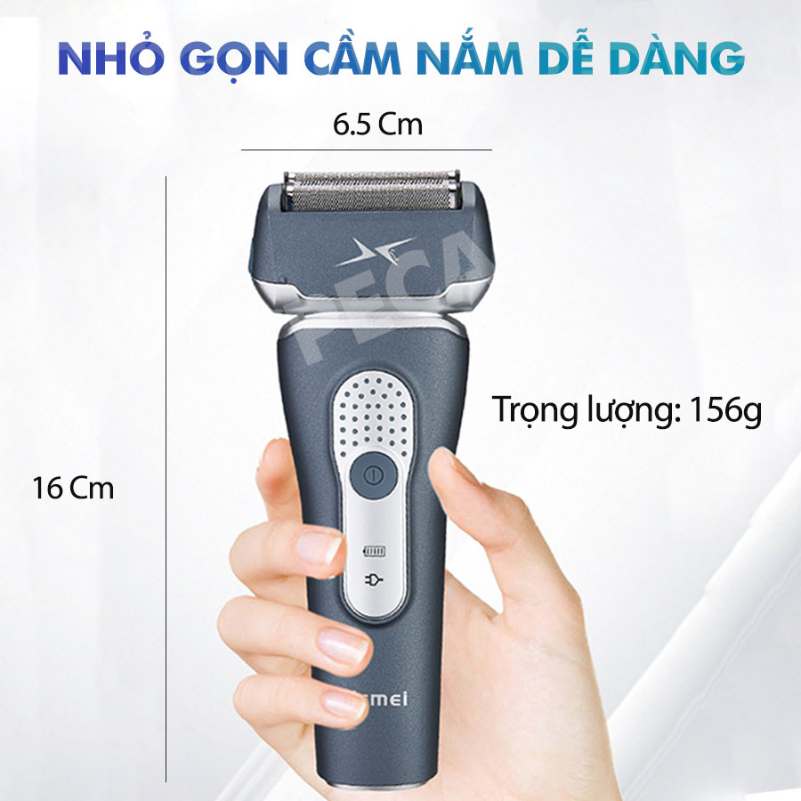 - Máy cạo râu KM-111 là sản phẩm đơn giản dễ dàng sử dụng cho nhiều kiểu dáng khác nhau, làm sạch râu 1 cách êm dịu hạn chế tiếng ồn. Máy cạo râu thiết kế lớp bảo vệ với nhiều lỗ nhỏ li ti giúp việc cạo sát nhanh chóng dễ dàng không gây trầy xước da Lưỡi kép có thể làm sạch kể cả râu ngắn mà không gây đau rát, khó chịu. Thiết kế linh hoạt, dễ dàng xoay theo góc cạnh khuôn mặt, cổ, gáy. Máy cạo râu chuyên dùng cho cạo râu, cạo trắng fade rất phù hợp cho salon tóc và còn rất phù hợp cho các đấn mày râu bỏ túi Đầu tỉa tóc mai, ria mép tiện dụng Máy sử dụng dây sạc USB tiện lợi sử dụng được nhiều phương pháp sạc: sạc dự phòng, máy tính, xe,... Sạc nhanh pin trâu cho thời lượng sử dụng đến 1 tuần cho 1 lần sử dụng khoảng 7-10 phút Công suất mạnh mẽ 5W hoạt động êm ái hạn chế tiếng ồn tối đa Công suất mạnh mẽ 5W hoạt động êm ái hạn chế tiếng ồn tối đa Thiết kế nhỏ gọn dễ cầm nắm giúp bạn sử dụng lâu mà không bị mỏi CÁCH BẢO QUẢN: