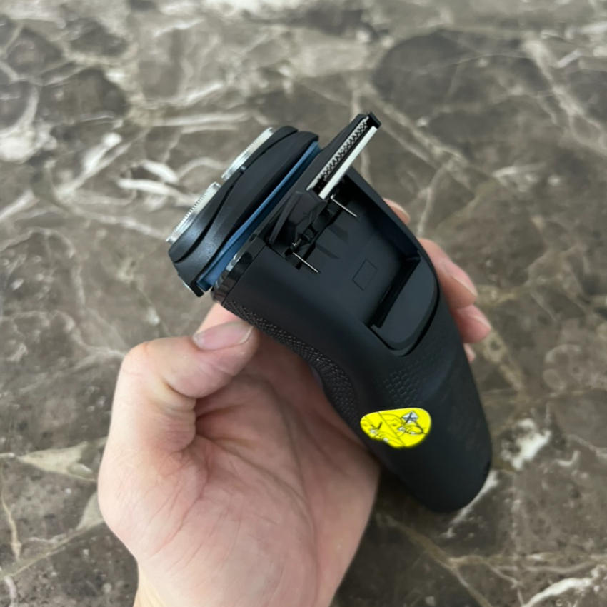 - Mở một chạm để dễ dàng vệ sinh: Làm sạch máy cạo râu một cách dễ dàng. Chỉ với một nút bấm, lật mở đầu máy cạo râu và rửa sạch bằng nước.