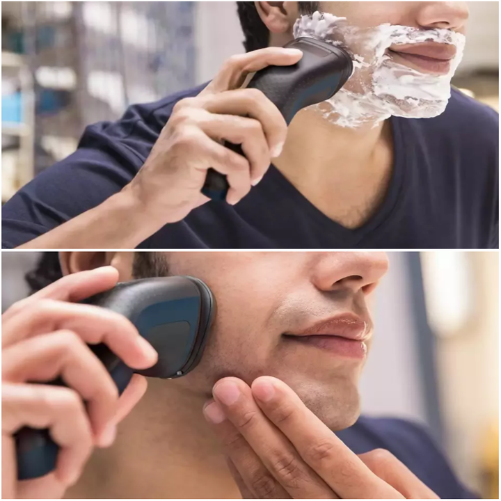 Thông tin sản phẩm Máy Cạo Râu Sử Dụng Sạc Pin Thông Minh Tiện Lợi Có Lưỡi Dao Kép Tự Làm Sắc, độ bền cao, cạo sát chân, cực sạch - Công suất: 2W -