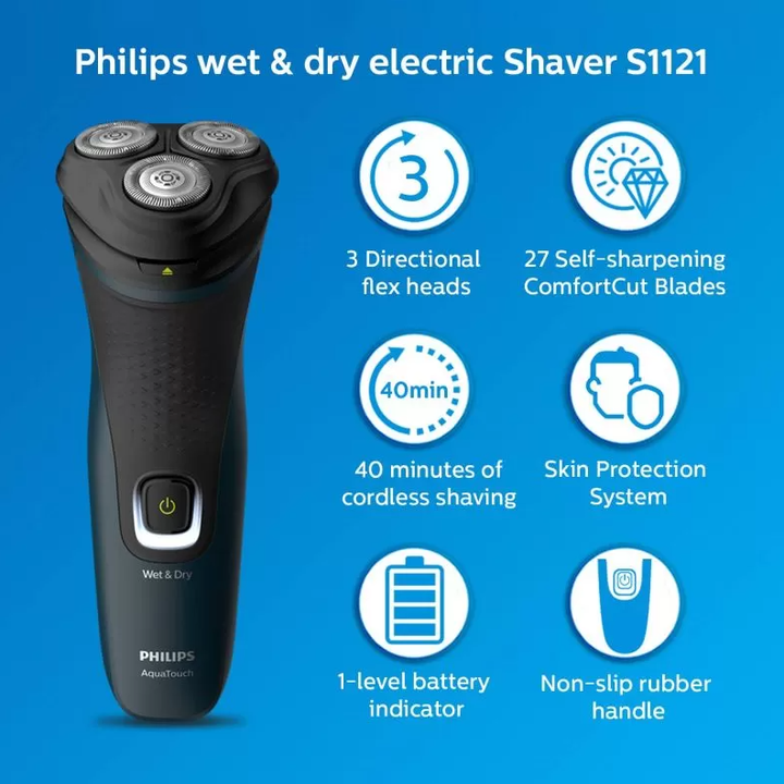 Máy cạo râu khô và ướt Philips AquaTouch S1121 - Hàng Nhập Khẩu