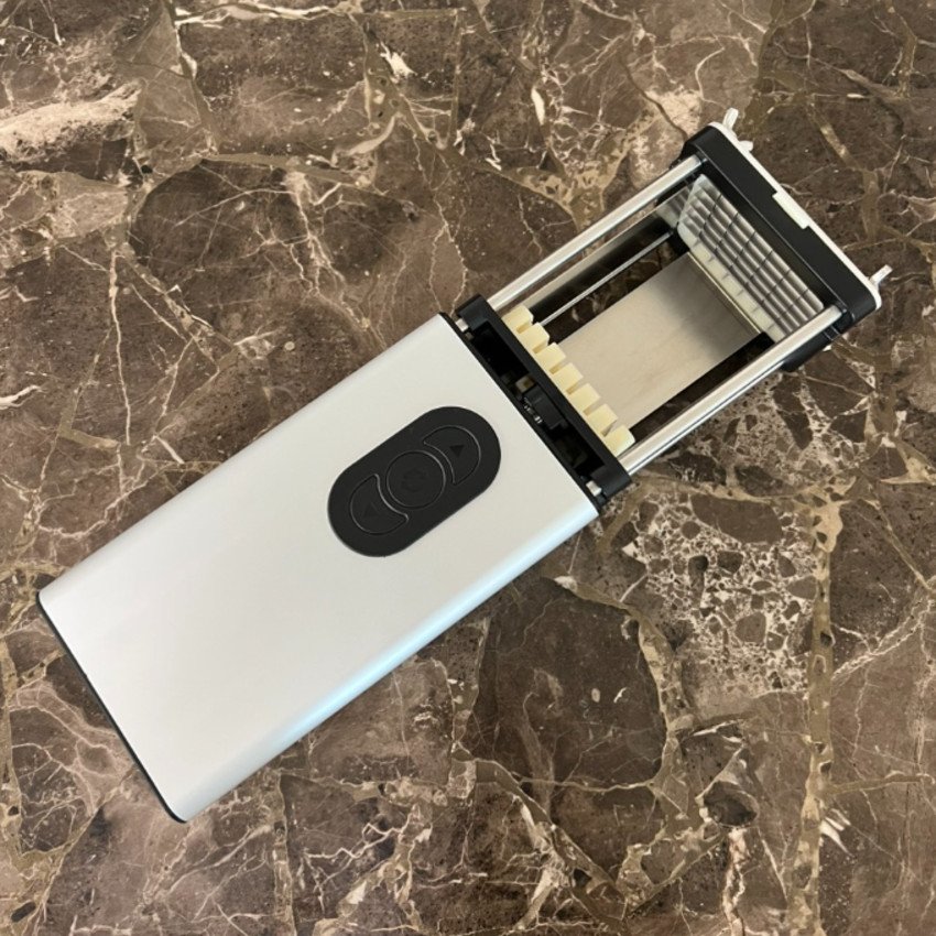 - Máy cắt khoai tây chiên tuy là một thiết bị tự động nhưng máy có thiết kế nhỏ gọn, kích thước 115 x 115 x 372mm, có thể di chuyển hoặc đặt cố định ở mọi vị trí mà không tốn diện tích - Thân máy được làm bằng vật liệu inox sáng bóng, khả năng chống han gỉ cao giúp hạn chế những tác động của ngoại cảnh và môi trường bếp nấu. Đặc biệt chất liệu inox cao cấp, không làm ảnh hưởng đến màu sắc và mùi vị của nguyên liệu, đảm bảo vệ sinh an toàn thực phẩm Vệ sinh máy dễ dàng, đảm bảo an toàn vệ sinh thực phẩm