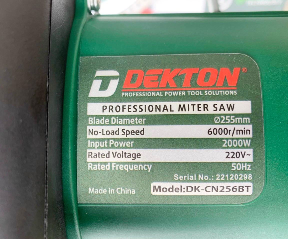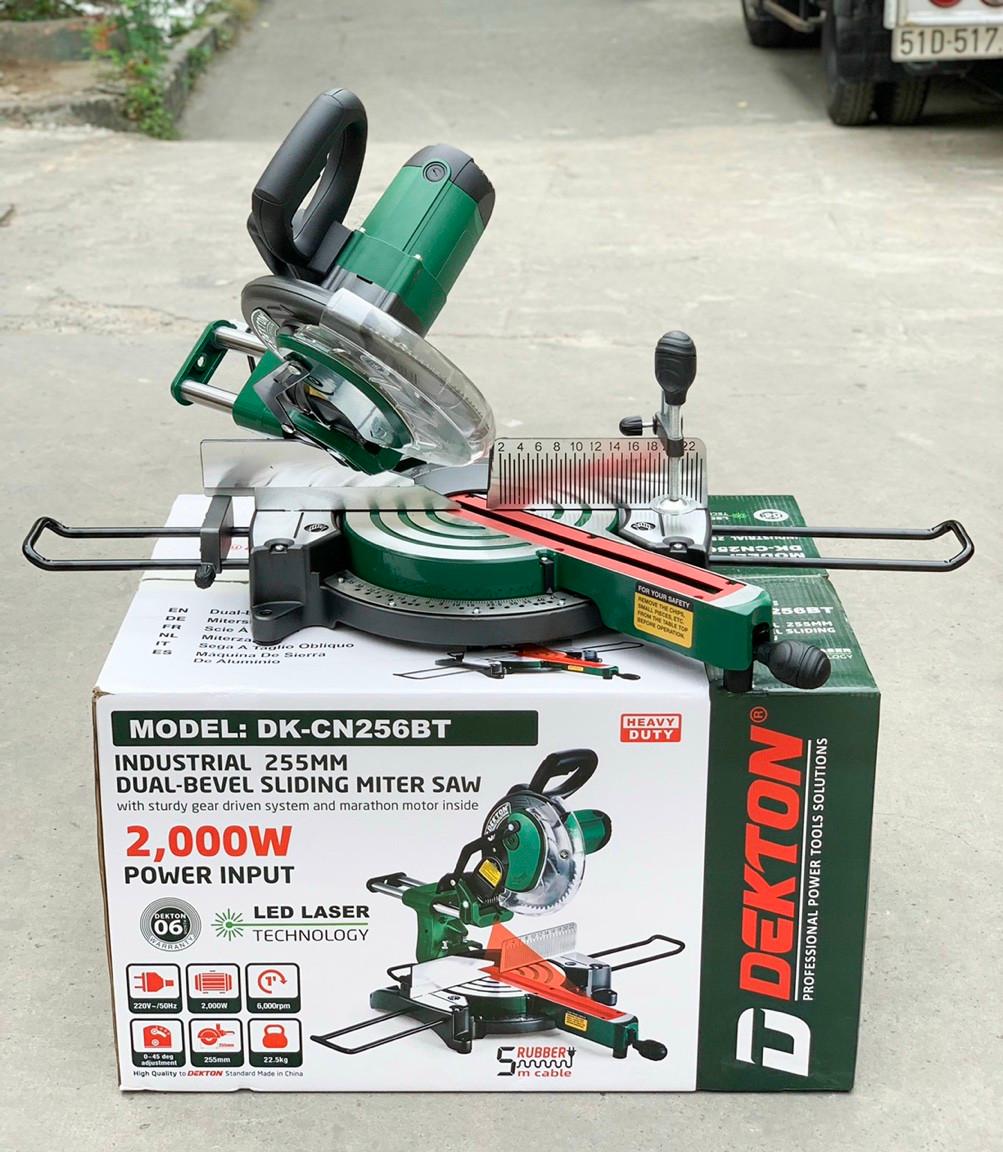 Thông số kỹ thuật -Model: DK-CN256BT -Hãng: Dekton -Sản Xuất: Trung Quốc -Công suất 2000w -Điện áp 220v/50hz -Tốc độ không tải 6000v/p -Đường kính lưỡi 255mm -Laser Có -Cắt nghiêng Có -Truyền tải Motor trực tiếp -Tặng kèm Lưỡi 120T -Bảo hành: 6 Tháng