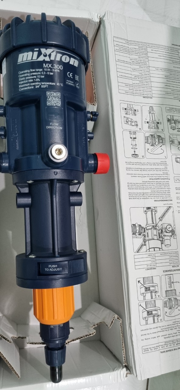 Máy châm phân/ Máy pha thuốc Mixtron MX.300.P150. - Lưu lượng nước qua máy đến 3000 lít / giờ. - Tỉ lệ định lượng : 1 - 5% - Kết nối ống: 27mm - Áp