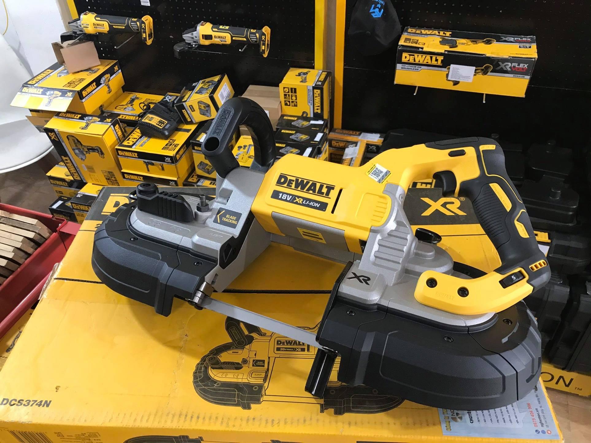 - Trang bị báng tay cầm chắc chắn, giúp người dùng dễ dàng di chuyển máy và cắt vật liệu nhanh hơn. Dewalt DCS374 có khả năng cắt tuyệt vời với 120mm dành cho thép và 127mm dành cho hộp sắt.