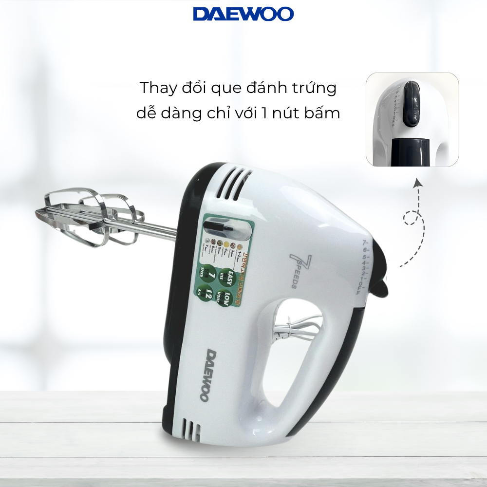 ✨Máy đánh trứng Daewoo DWHM-318 công suất 150w kèm qua đánh inox - Hàng chính hãng