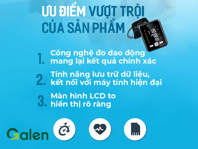 - Sử dụng công nghệ hiện đại mới tự động hoàn toàn giúp đo huyết áp đơn giản, nhanh chóng.
